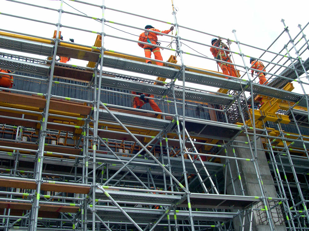 Andamios temporales de trabajo que permiten el acceso de operarios y materiales a diferentes puntos de una estructura en construcción, tanto en el sector de la edificación y el industrial, como en obra civil.