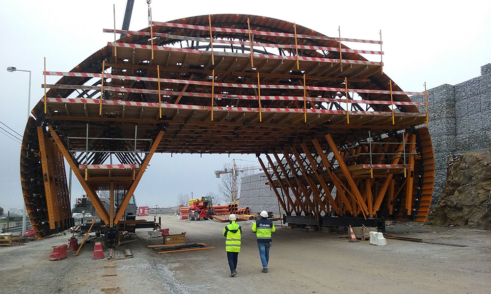 El sistema de moldaje para túneles MK está compuesto por un carro móvil ligero que soluciona tanto el soporte de la estructura como el moldaje. Está enfocado al mercado de la obra civil, concretamente a la construcción de túneles en mina, de hasta 1km de largo: estaciones de metro, conexiones entre túneles, galerías hidráulicas etc.
