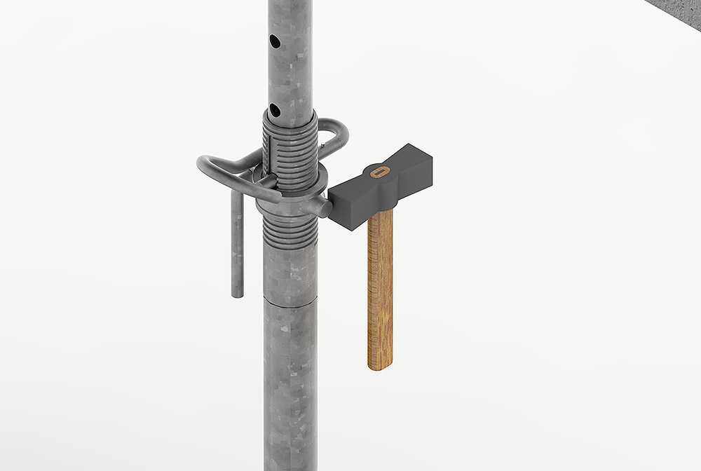 Gran variedad de puntales ligeros de acero. Destaca su fácil sistema de descarga, protección para las manos del operario y rosca auto limpiante.