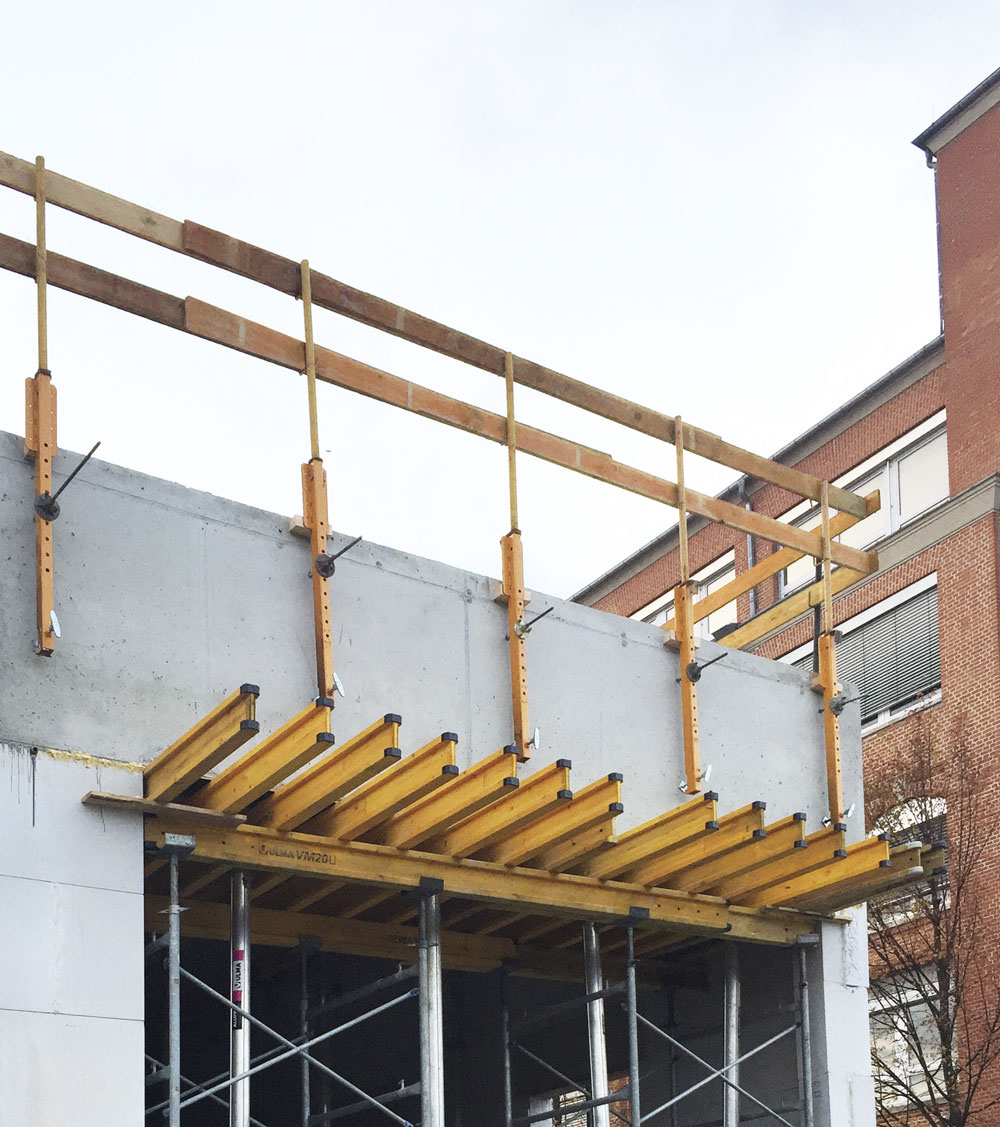 Barandillas de seguridad diseñadas para garantizar la protección colectiva en los bordes de forjado, de montaje sencillo y rápido. Optimizadas para su aplicación en superficies horizontales o inclinadas, se combinan con los moldajes de losa de ULMA pudiendo proteger hasta los bordes de forjado más complicados del edificio.