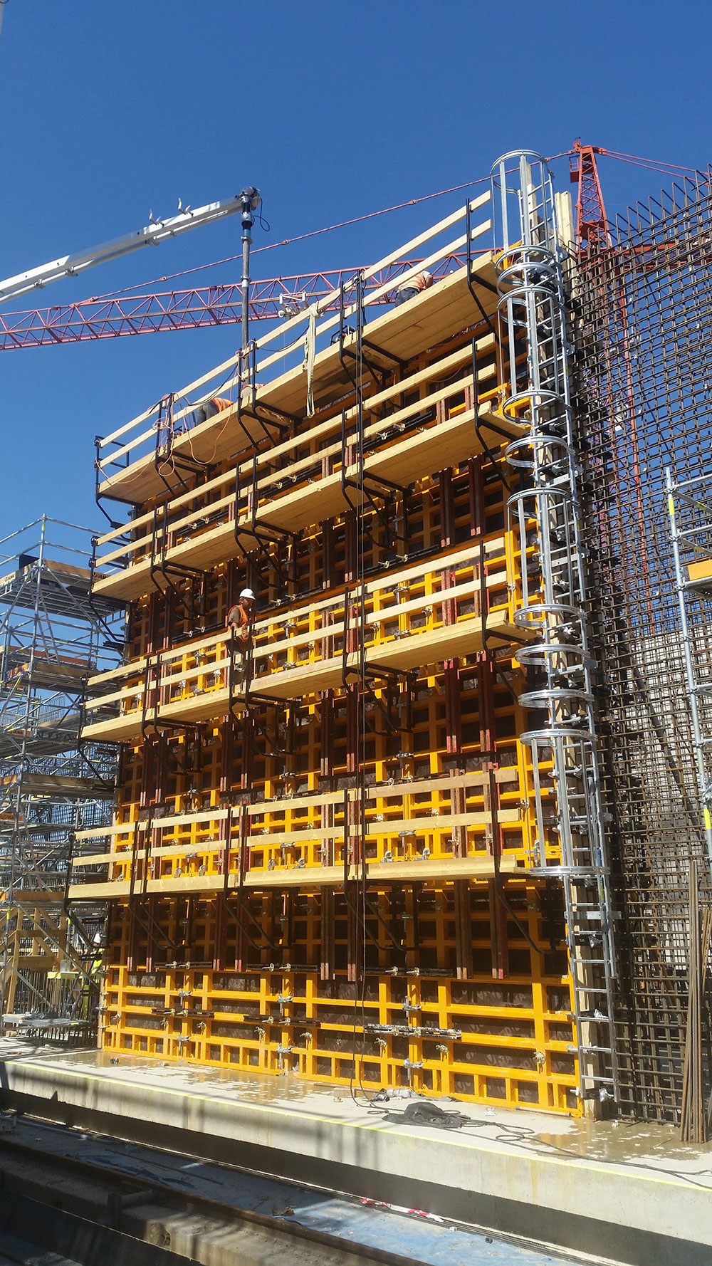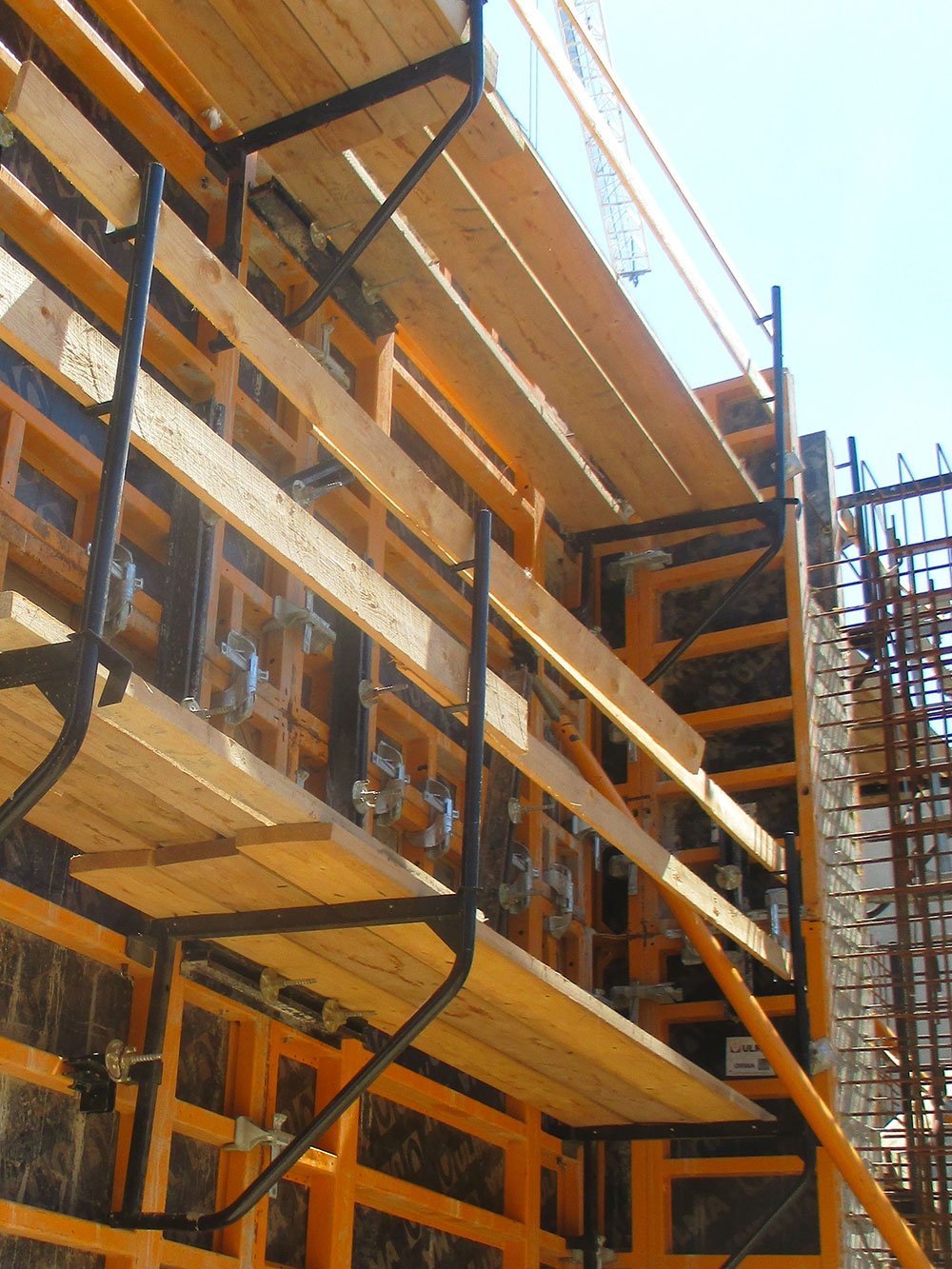 Sistemas de seguridad diseñados para realizar trabajos de hormigonado de muros. La plataforma de hormigonado se caracteriza por su sencillez de montaje, permitiendo reducir plazos en las labores de colocación de accesorios de moldaje y posterior hormigonado y vibrado. Está optimizada para su colocación en moldajes de muro.