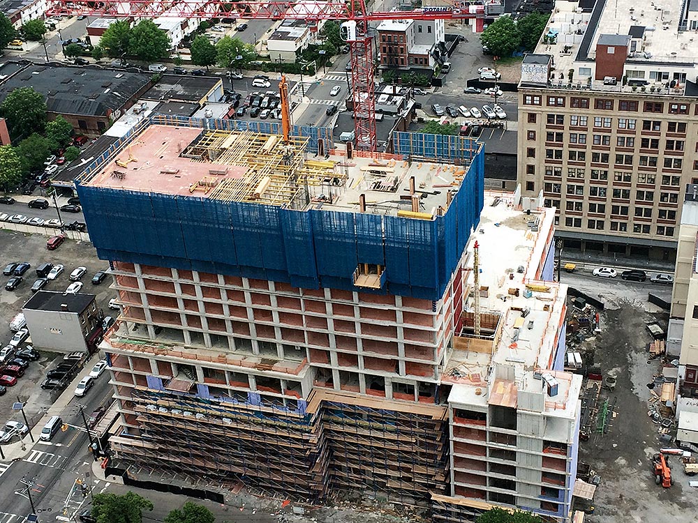 Para minimizar los trabajos de montaje en obra, los paneles se han premontado en las instalaciones de ULMA en New Jersey. Se han diseñado de manera que se ha optimizado su tamaño para el transporte y conseguir paneles de gran anchura para colocarlos en el edificio e incrementar los rendimientos de ejecución.