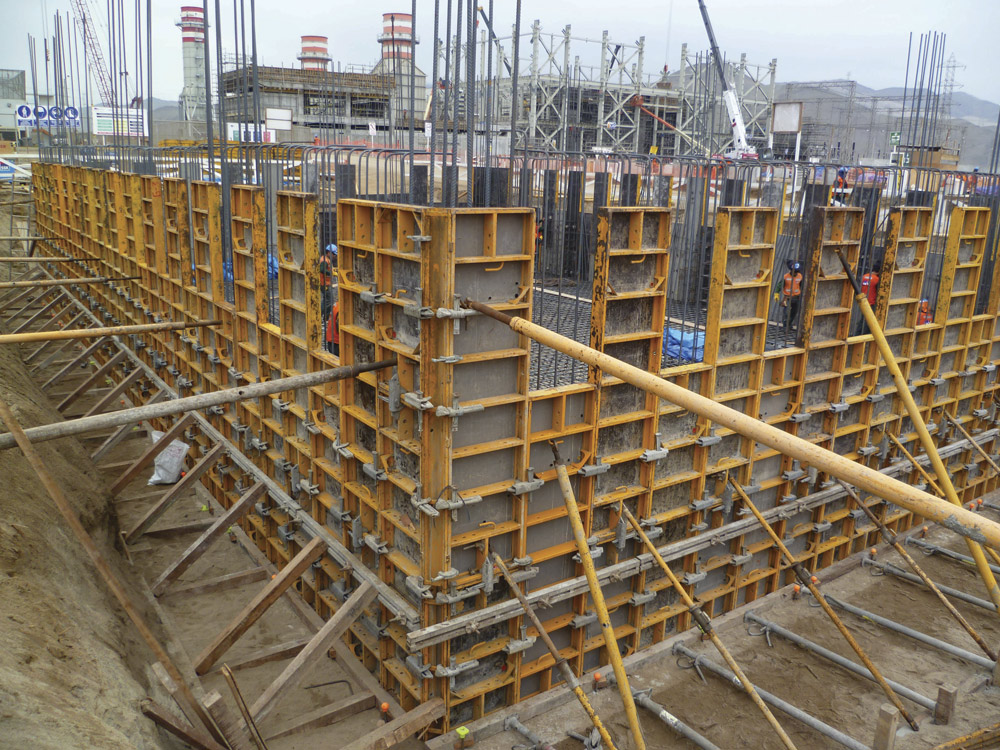 El edificio de la turbina fue la estructura más compleja del proyecto, donde columnas y vigas se revistieron con el moldaje vertical NEVI. Además, se empleó la Cimbra BRIO como apeo de las vigas peraltadas, a 12 m de altura y recubiertas con ENKOFORM H-120.