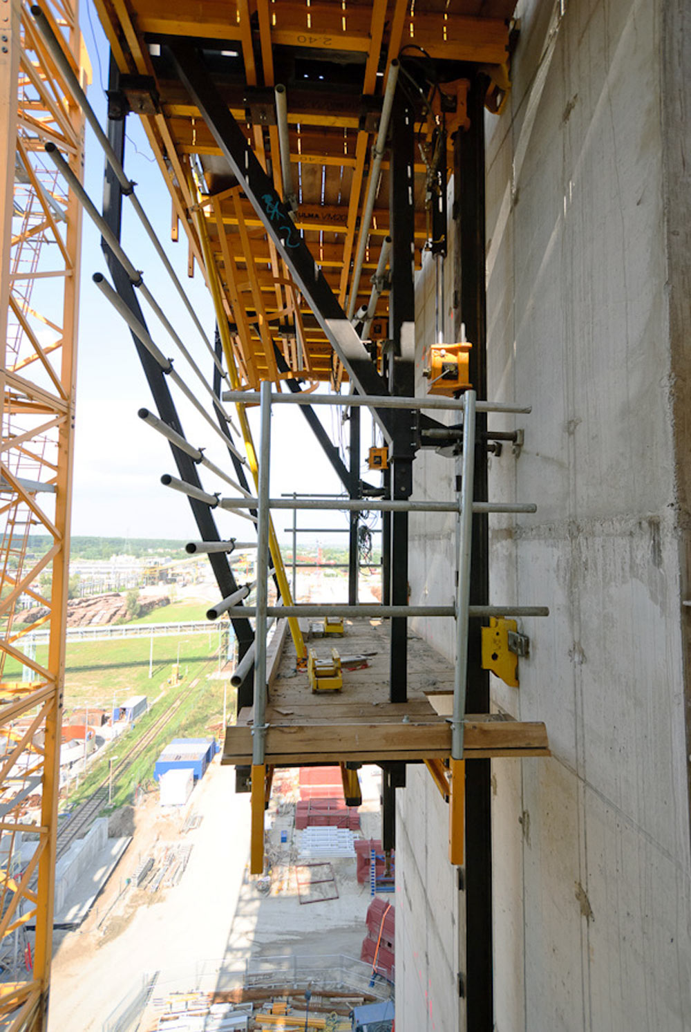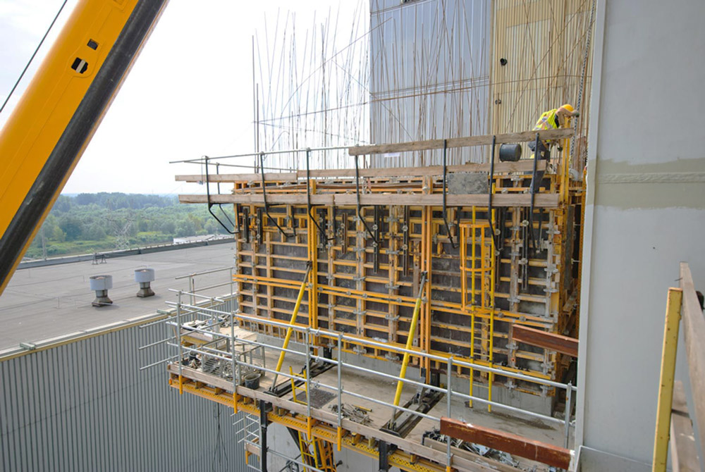 ULMA empleó por primera vez en Polonia el sistema autotrepante ATR, lo que solucionó el escaso espacio de obra y el complejo manejo de grúa para traslado de moldaje.