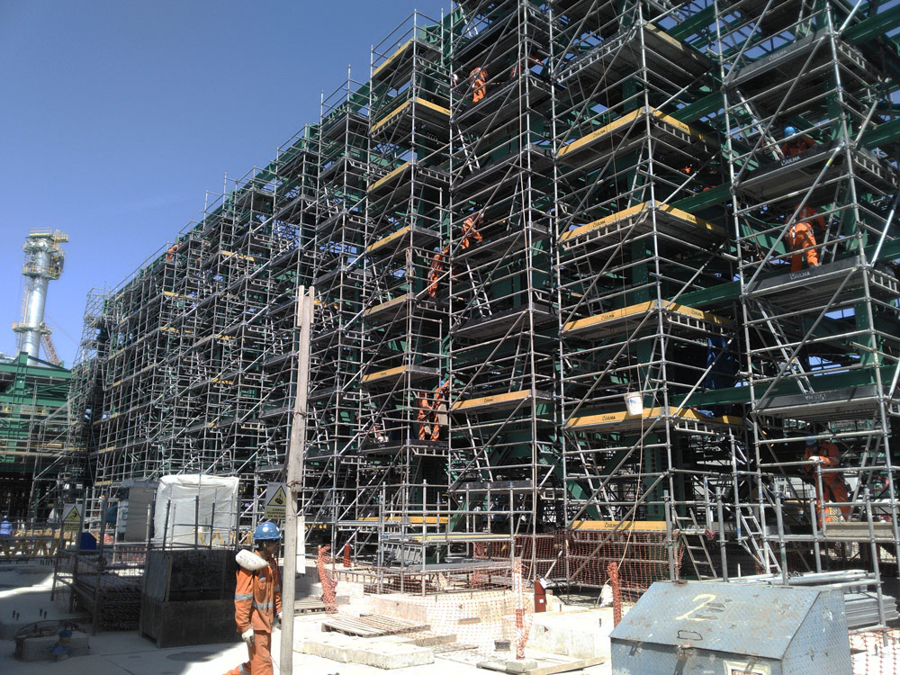 En una primera fase, se han construido las unidades de producción. Posteriormente, se han montado los racks y las estructuras metálicas, que sirven de soporte para los equipos propios de refinado y procesado de crudo, y el paso de tuberías. En ambas actuaciones, los moldajes y andamios ULMA han jugado un papel principal.