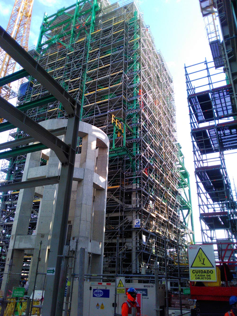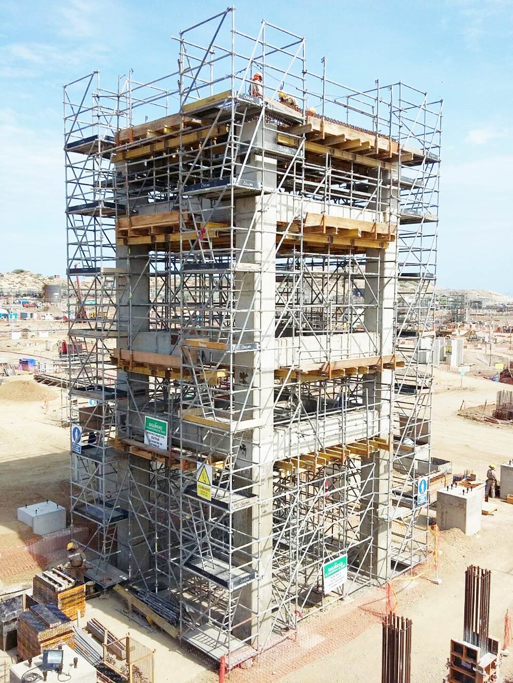 El sistema BRIO ha cumplido una doble función, en forma de plataformas de trabajo con soluciones versátiles, y como cimbra ofreciendo un apeo resistente, seguro, y rígido para el hormigonado de losas y vigas a grandes alturas y con espesores considerables.