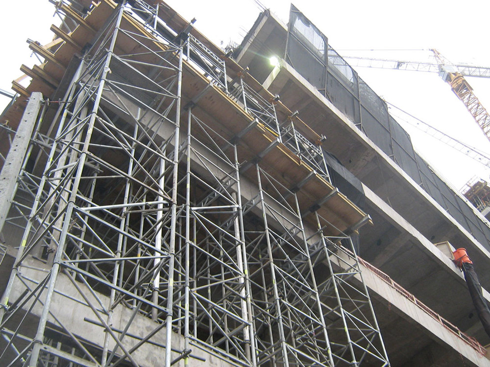 Se solucionaron grandes alturas con el sistema de torres T-60, soportando cargas de vigas estructurales.