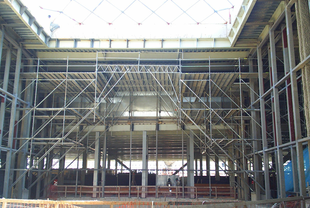 Ulma, incorporó personal estable en esta obra, proyectista y supervisor de obra, quienes día a día solucionan las diversas soluciones solicitadas en la obra, planificando junto al cliente la mejor opción principalmente en andamios multidireccionales Brío, para plataformas de trabajo en altura, cubriendo vacíos o generando zonas para apilar material, plataformas Brio combinadas con puntales Aluprop.