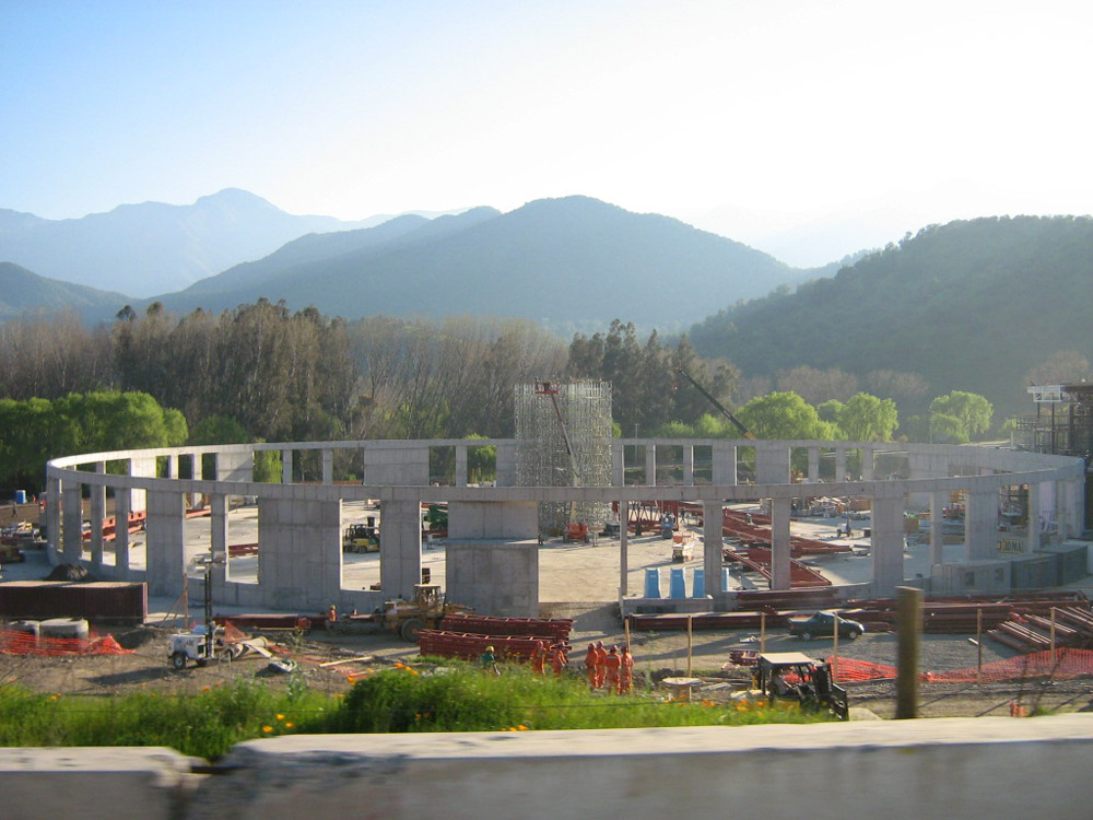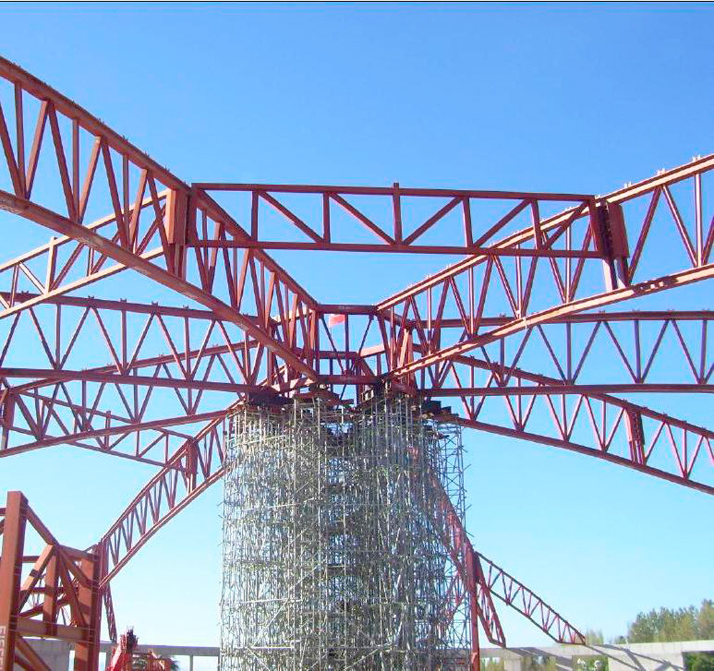 En la parte central se instaló un anillo de estructura metálica al cual se unirían las cerchas en todo el diámetro.