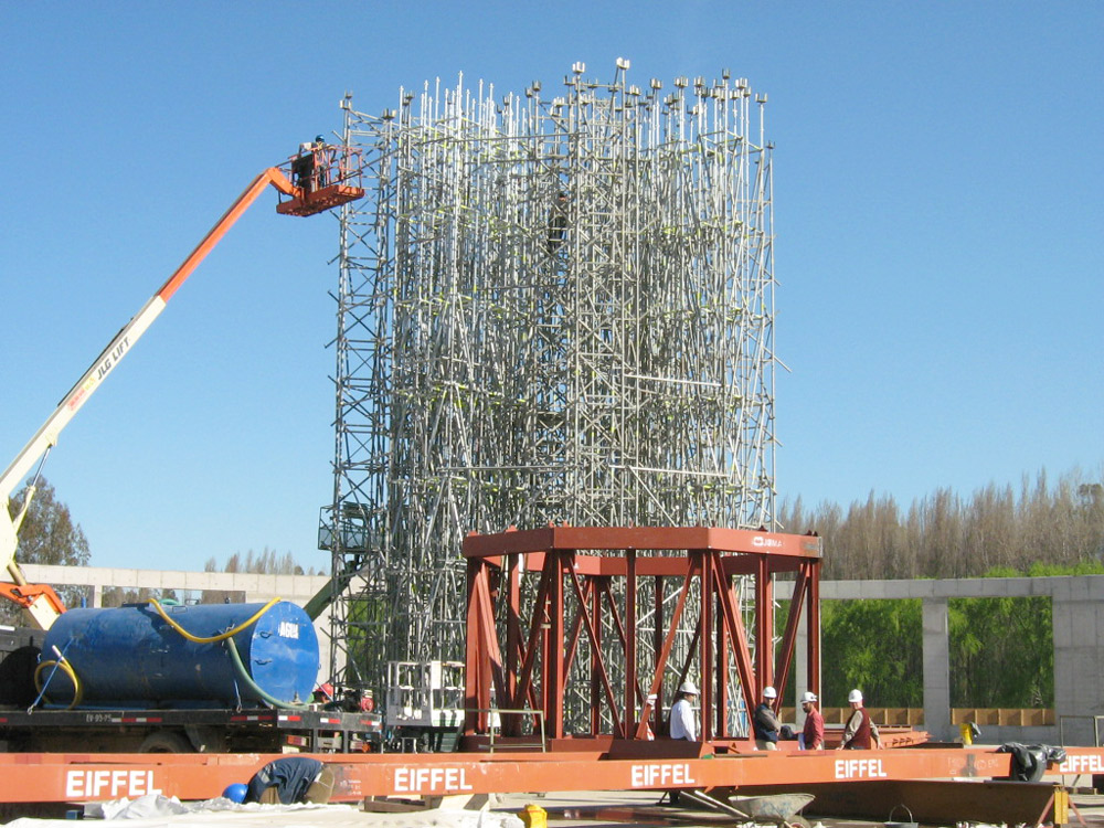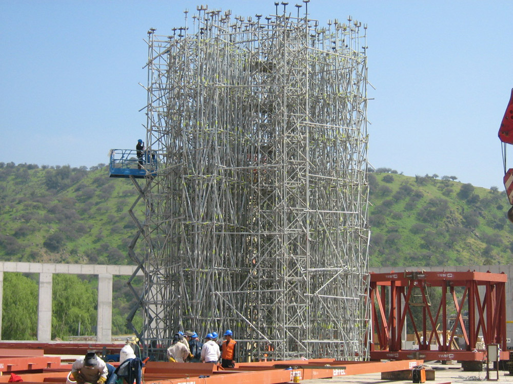 Una vez conocidas las cargas puntuales ULMA distribuyó en forma estratégica torres del sistema BRIO y T-60, amarradas entres si con tubos y abrazaderas, a simple vista parece una verdadera enredadera de tubos, pero fue un reto para el departamento de proyectos y de ingeniería que complementados con la supervisión de terreno dieron solución a la obra con éxito.
