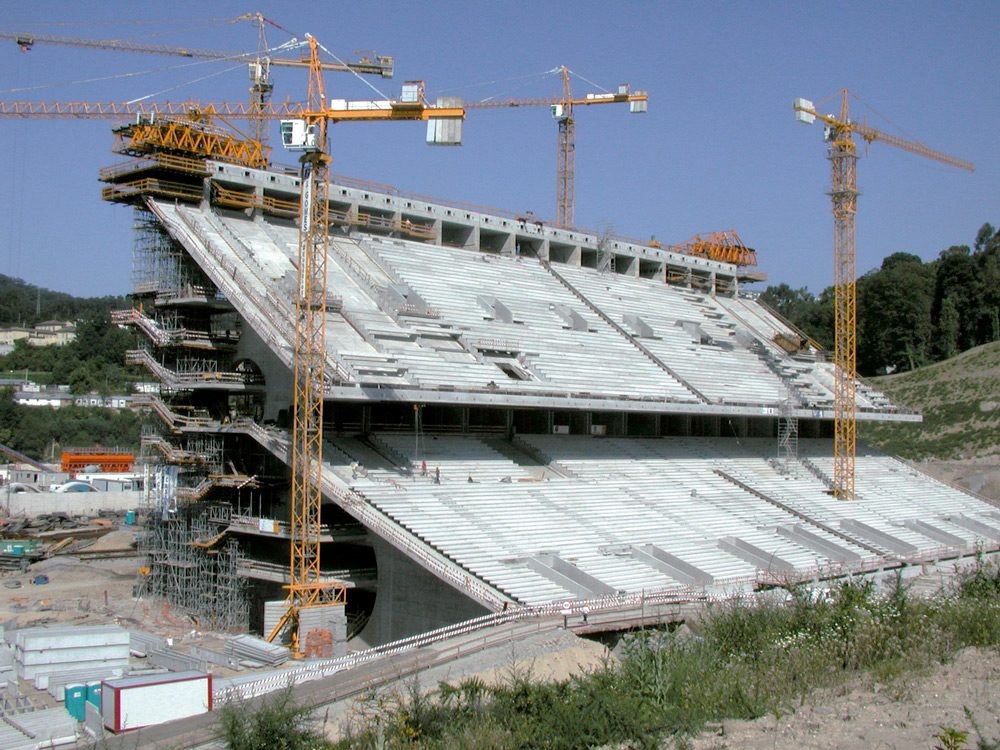 Proyectado sobre una cantera en desuso, el Estadio de Fútbol tiene un aforo de más de 30.000 espectadores. Consta de dos graderíos, "Nascente" y "Poente", en los laterales del campo de juego, y 3 galerías circulares que los atraviesan, además de dos plantas de aparcamiento bajo rasante. Su cubierta está formada por una trama de cables, con una luz de 220 m, que enlaza las dos tribunas.