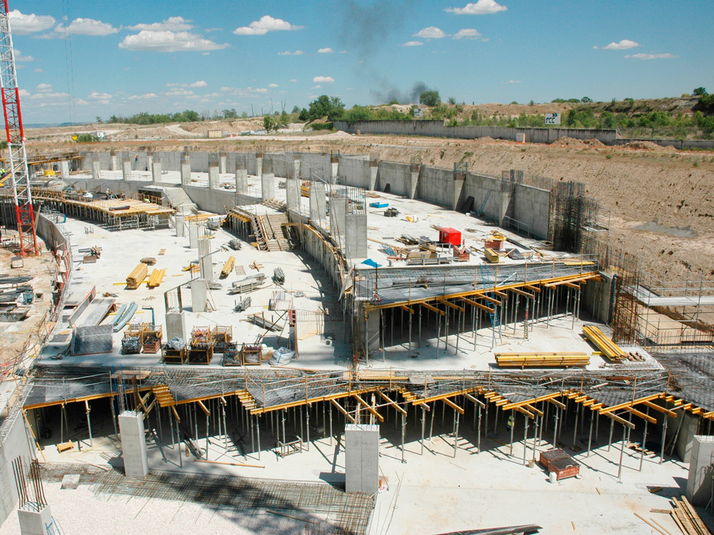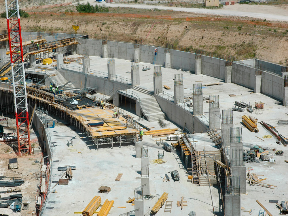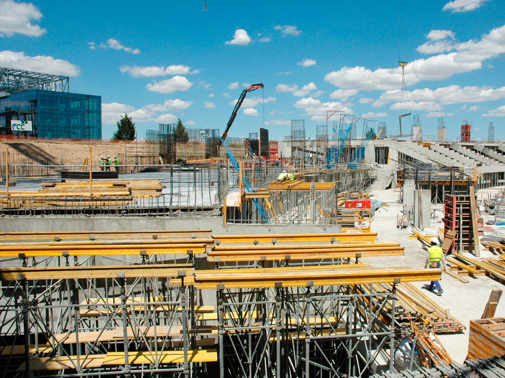 Debajo de los pórticos, se ha dispuesto de forjados de hormigón armado o postesado, para crear las diferentes plantas y sótanos del estadio. Estas zonas, se han realizado también con moldaje ENKOFORM, esta vez, apeado con puntales EP. Para su realización, se hizo un análisis detallado conjuntamente con el cliente y se determinó que esta iba a ser la mejor solución.