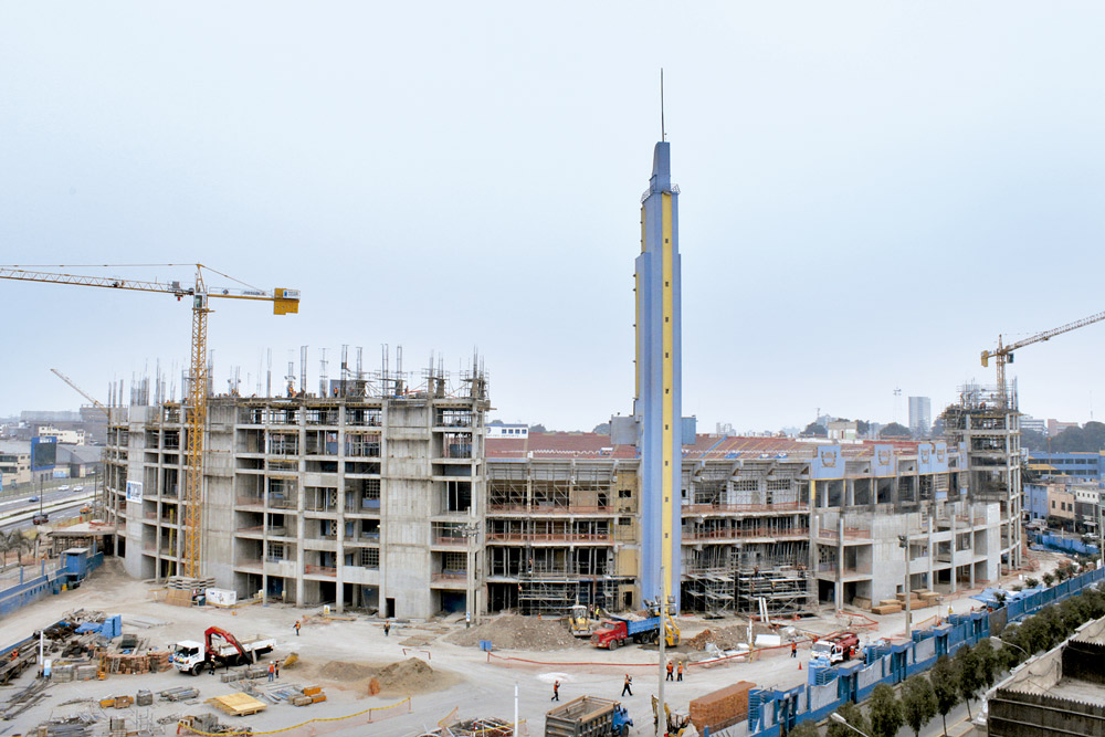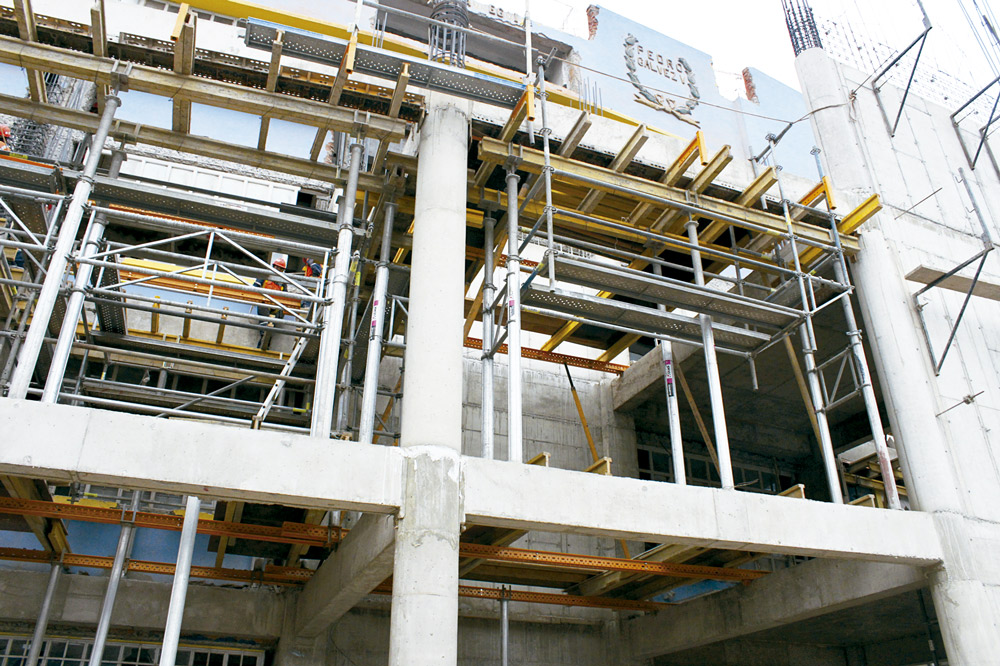 Las estructuras verticales se realizaron con el moldaje manuportable COMAIN. Y gracias al andamio multidireccional BRIO, los trabajos en altura se efectúan con total seguridad.
