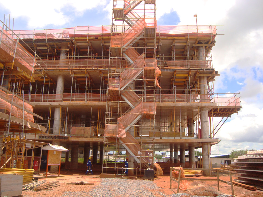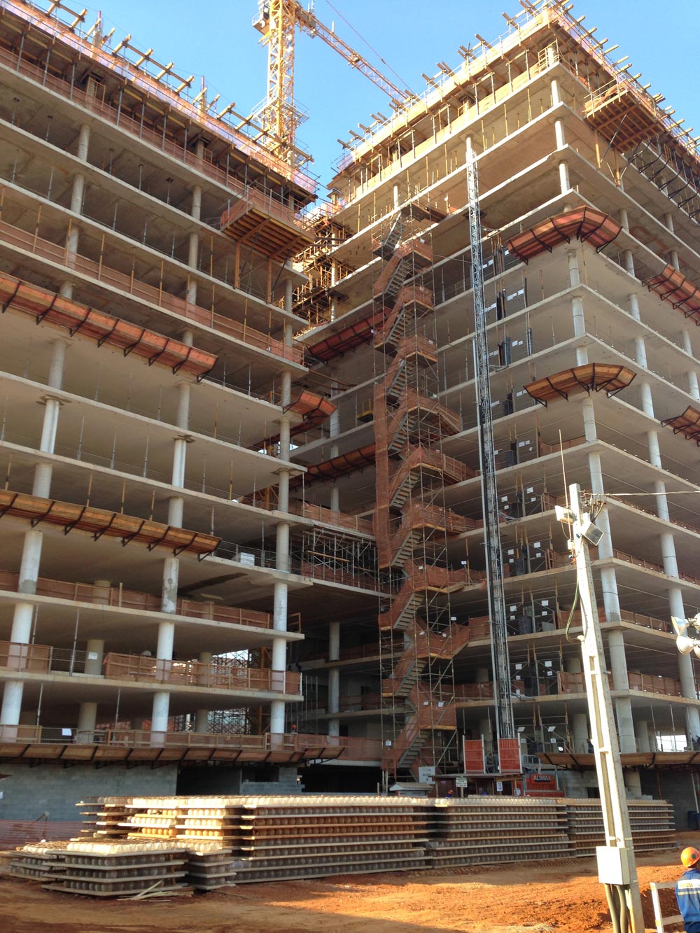 Por último, el Andamio Multidireccional BRIO se está empleando para crear acceso a las diferentes áreas de trabajo. El sistema ofrece acceso libre y seguro a las zonas en construcción para los trabajadores.