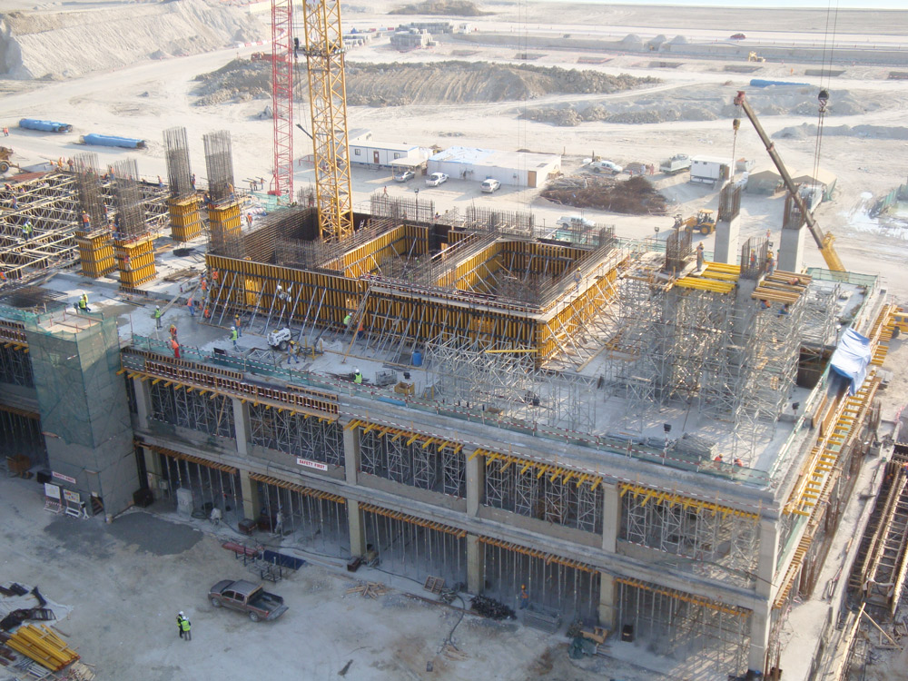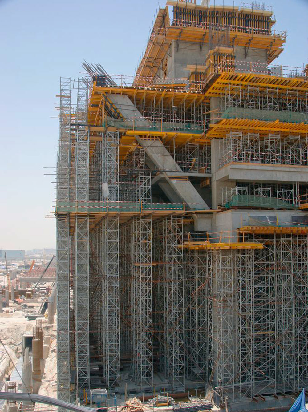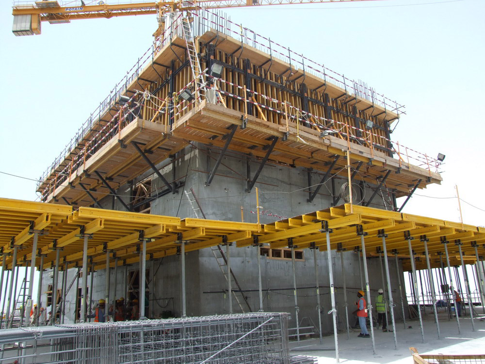 Los Puntales EP y la T-60 fueron los encargados de transmitir, de modo seguro, las cargas de las losas de hormigón armado de 45 cm de espesor. La altura de las torres y su peculiar geometría, en ciertos casos inclinada, requirió de soluciones particulares.De ahí que el equipo de ingenieros resolviese la distribución de cargas con torres de T-60 que llegaron a alcanzar los 45 m. En todo momento la seguridad del equipo y de los operarios estuvo garantizada.