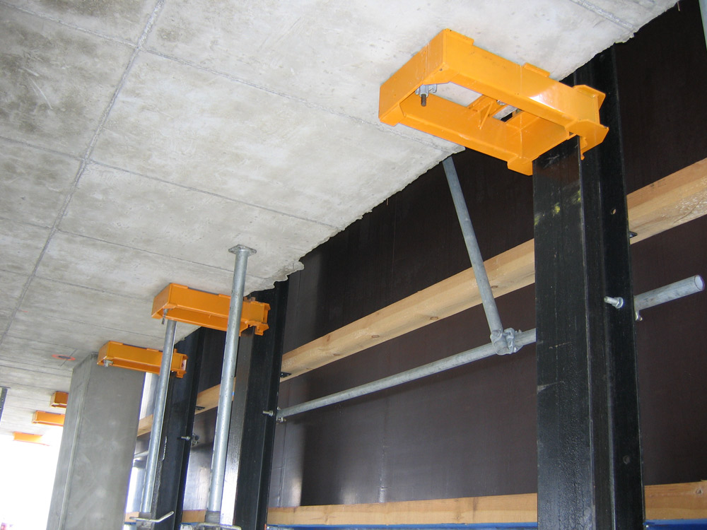Además, se suministraron durante tres meses 33 protecciones perimetrales, de 10,5 m de altura cada una, utilizadas para asegurar las zonas de trabajo al ejecutarse los pisos de forma consecutiva. Así los operarios pudieron trabajar de forma eficiente y protegidos del viento y de las inclemencias meteorológicas a grandes alturas. El mecanismo se basa en un conjunto de dos mástiles unidos entre sí por vigas de acero y vigas de madera. Cada mástil, suspendido de un par de cabezales montados en las losas, determina el sentido de movimiento de cada protección. Gracias a la eficacia de este sistema, la ejecución del perímetro exterior de las losas superiores resultó sencilla, además incrementó de forma considerable los ritmos de trabajo con el consiguiente ahorro de tiempos.