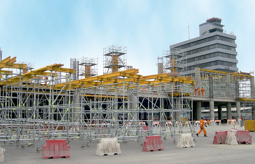 El Andamio Multidireccional BRIO permitió realizar los trabajos sin interrumpir la actividad y el tránsito de pasajeros. Los ingenieros plantearon como solución una plataforma continua realizada con un andamio colgado de la losa superior de la estructura en la terminal. El anclaje se efectuó con barras roscadas, trasmitiendo las cargas a la losa mediante Vigas DU, ajustadas con tuercas hexagonales. Se cubrió un total de 6.000 m² con Plataformas BRIO y 4.000 m² de plataforma con tablero tricapa. El andamio contó con los máximos niveles de seguridad, tanto para los operarios como para los usuarios de la terminal, y demostró su capacidad de adaptación a cualquier geometría.