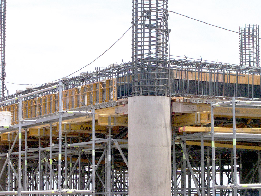 El sistema CLR se empleó en los pilares de sección circular, logrando un perfecto acabado de hormigón visto. Todos los moldajes de pilares se equiparon de plataformas BRIO para el hormigonado, permitiendo a los operarios realizar las tareas de una forma rentable y segura.