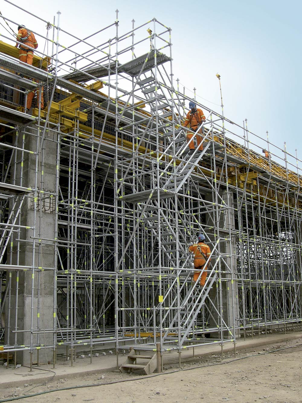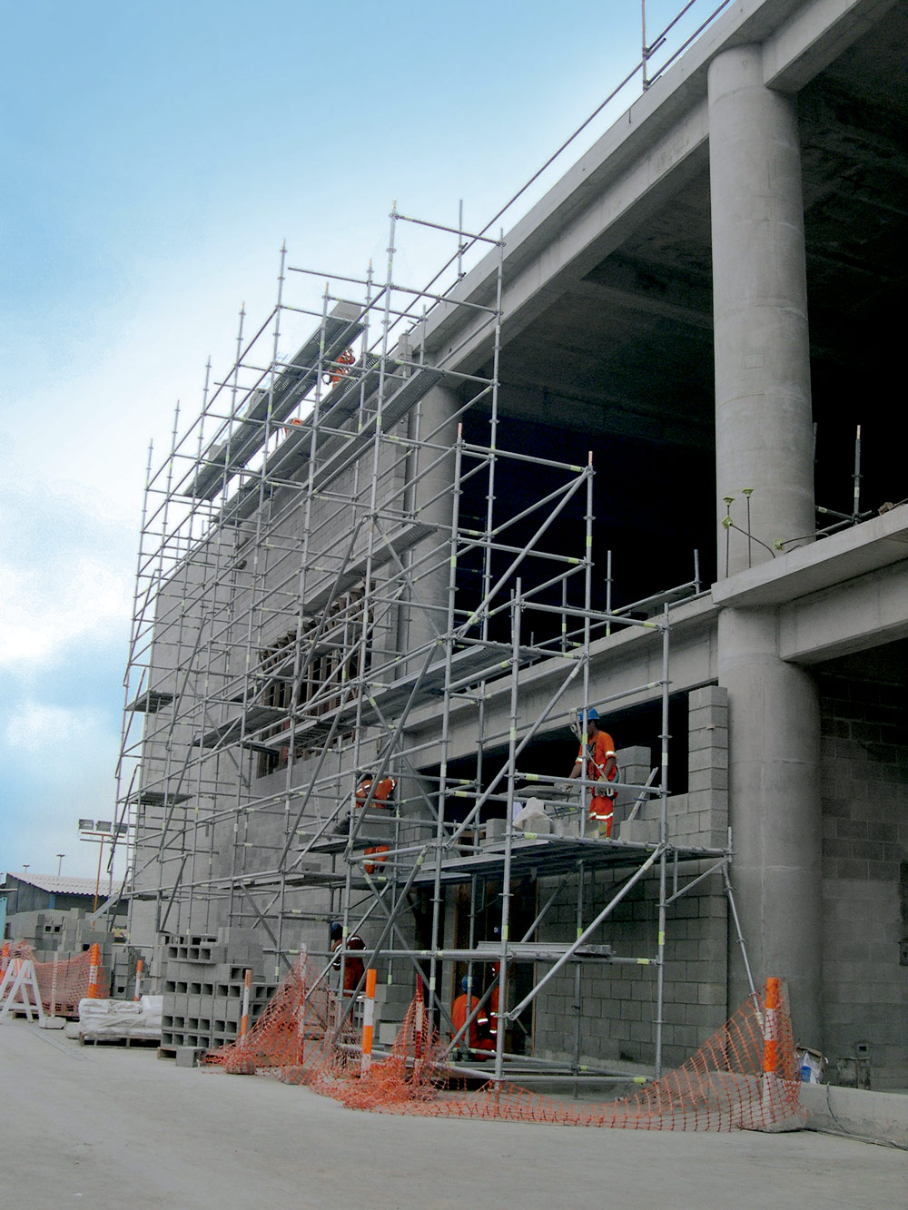 Además, se instalaron con sistema BRIO plataformas a distintos niveles para solucionar el cerramiento con bloques de hormigón. Provistas de escaleras, facilitaron el acceso provisional a las plantas de aquellas estructuras que se iban ejecutando.