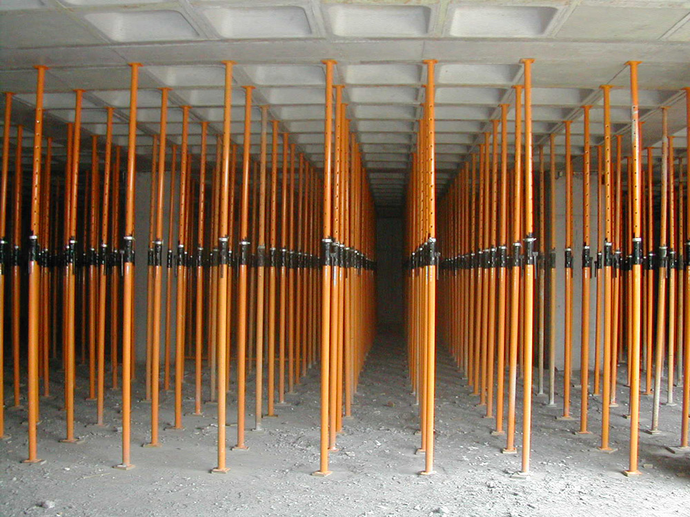 La tercera planta, de losa maciza, se realizó con Mesas VR apoyadas sobre Puntales EP que soportaron las cargas del forjado. La particularidad de este sistema residió en que se montó al inicio de la obra y se trasladó, sin desmontar, de una zona a otra con la economía de tiempos y costes que supuso.
