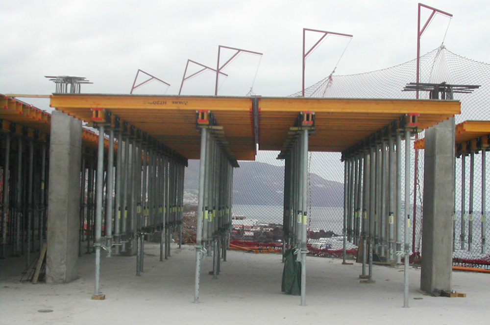 La plataforma está constituida por un edificio de tres plantas subterráneas. En la ejecución de la losa aligerada de las dos primeras plantas, se empleó el Moldaje Recuperable RECUB, con un nervio de 18 cm y como sistema de apeo Puntales SP. Este sistema demostró altos rendimientos en obra ya que se encofró la planta completa por ser de pequeña superficie. La ejecución, enfierradura y seguridad del personal se incrementó.
