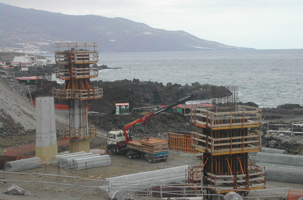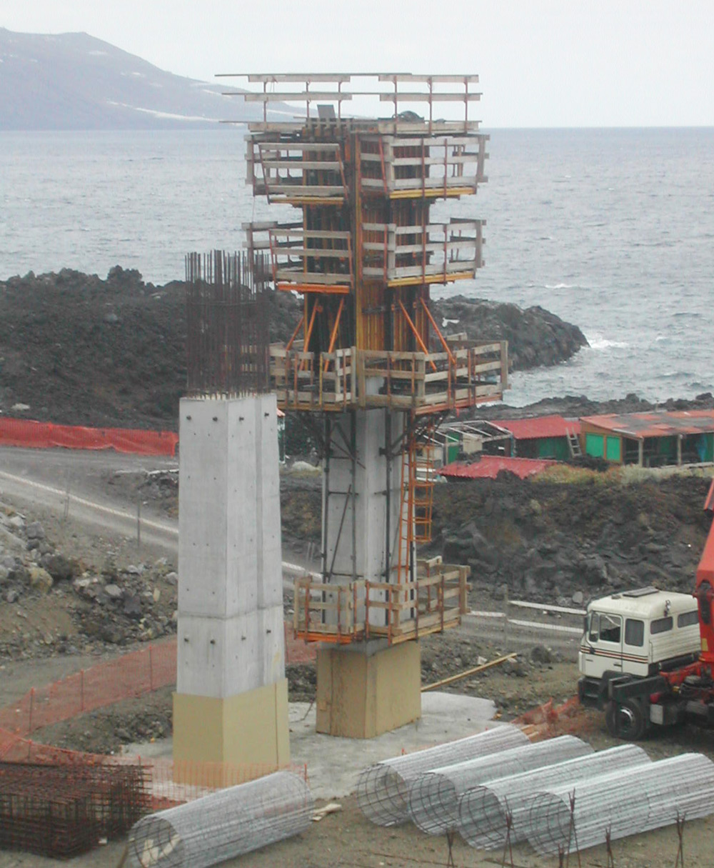 Las pilas de los accesos al aeropuerto se ejecutaron con la perfecta combinación entre consola de trepado y ENKOFORM V-100. Este conjunto polivalente fue capaz de solucionar las diversas geometrías que se dieron en obra empleando siempre elementos estándares.