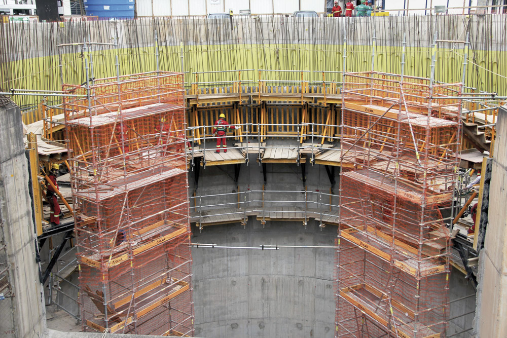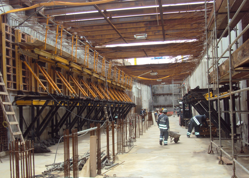 Además de mantener la máxima de rotación de sistemas, los pilares centrales del túnel con más de 5,5 m de altura debían realizarse en una sola tongada y disponer de un perfecto acabado. ENKOFORM VMK ha cumplido con todos los requisitos solicitados.
