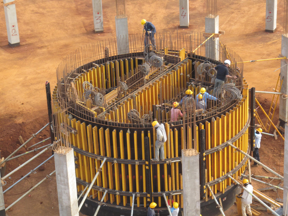 El diseño del moldaje permitió soportar presiones del hormigón de hasta 60 kN/m2. El mayor conjunto exterior (moldaje y estructura soporte) pesó 5.600 kg, mientras que el principal conjunto interior llegó a 3.600 kg. Esta solución permitió elevar cada conjunto de forma independiente y mediante grúa.
