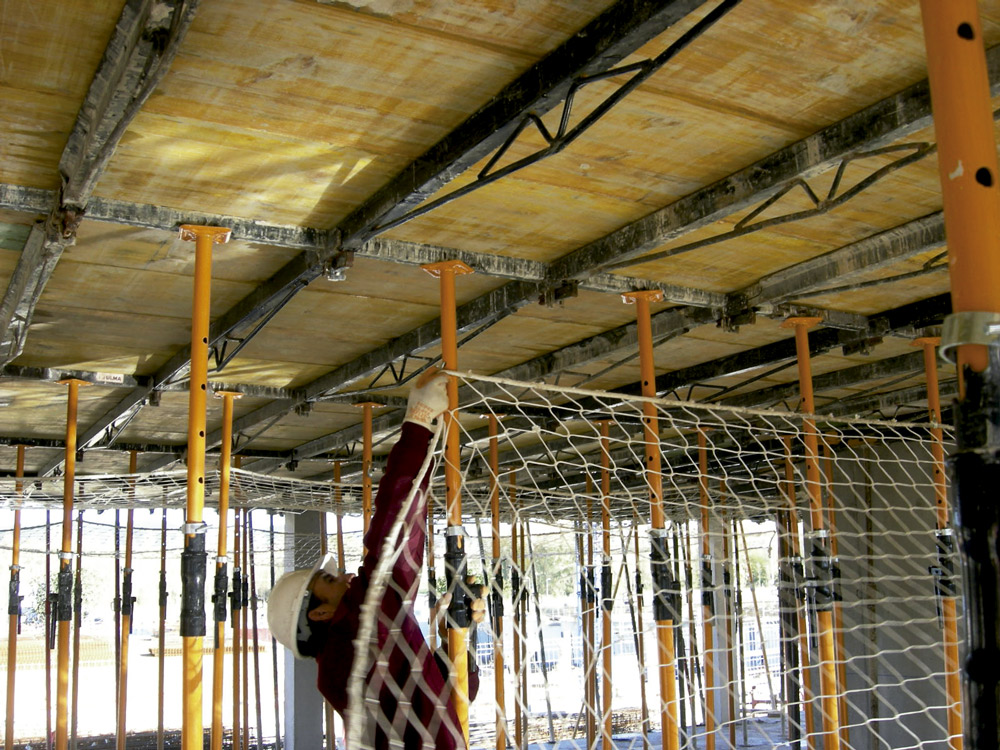 Para salvar el fuerte desnivel existente, se diseñaron losas a diferentes alturas que se ejecutaron con el Moldaje Horizontal RAPID sobre Puntales SP. La protección de los trabajadores fue continua en todo el proyecto, montaje y desmontaje. Como sistemas de seguridad se emplearon las barandillas y redes bajo forjado, la solución más eficaz para evitar cualquier caída durante la colocación del tablero.