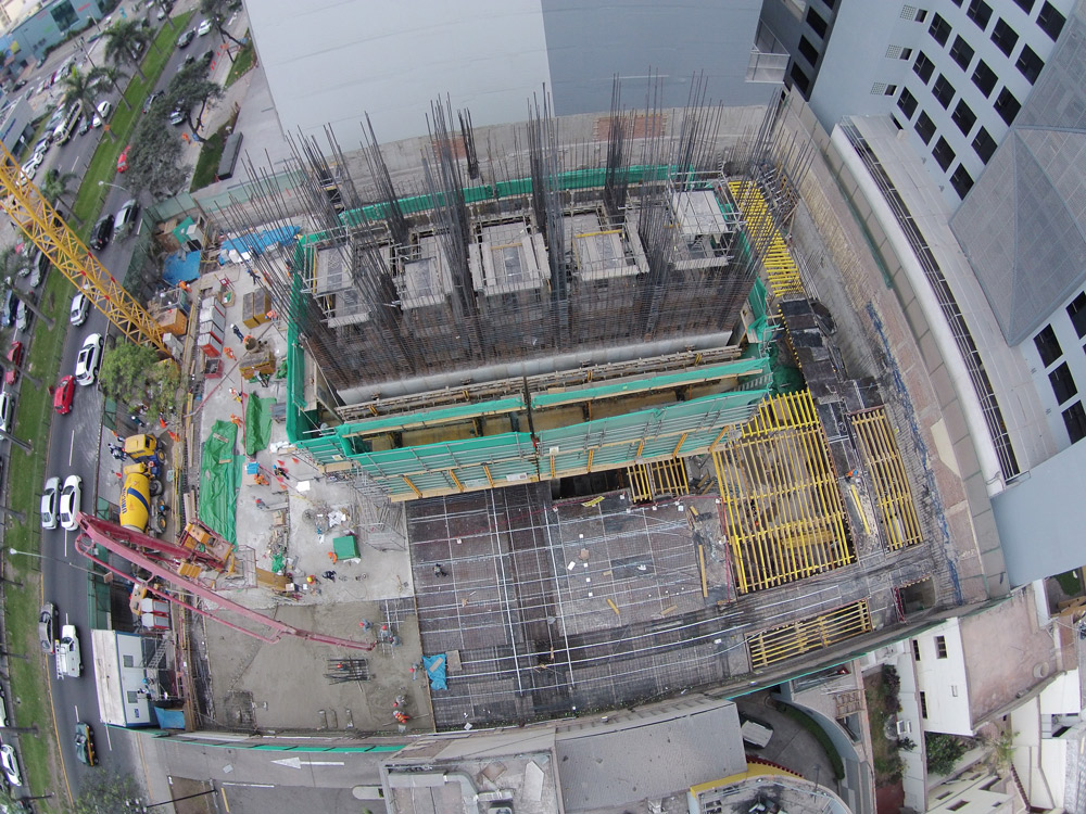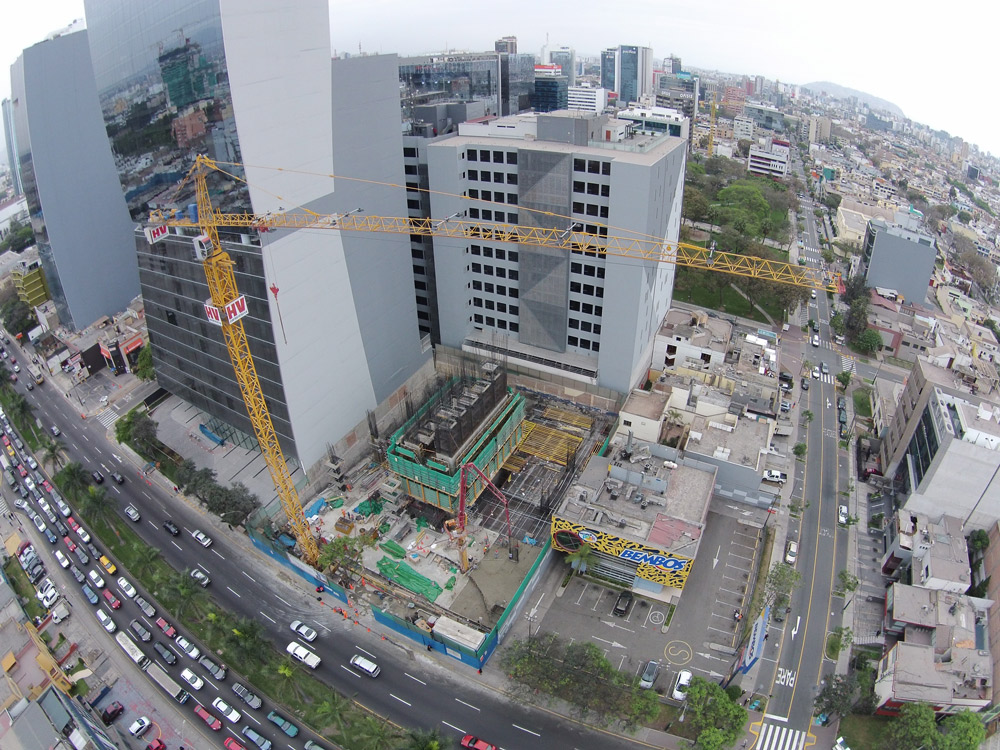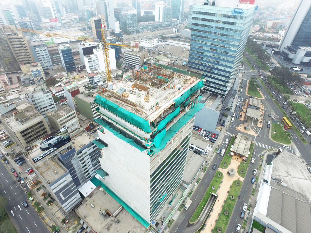 Ubicada en el centro financiero de Perú, la torre comercial de más de 90 m de altura será uno de los edificios más altos de Lima. Cuenta con 27 pisos de diseño vanguardista y 9 sótanos construidos en un área de 82 401.32 m².