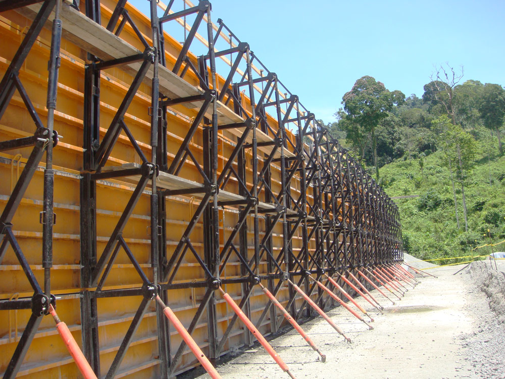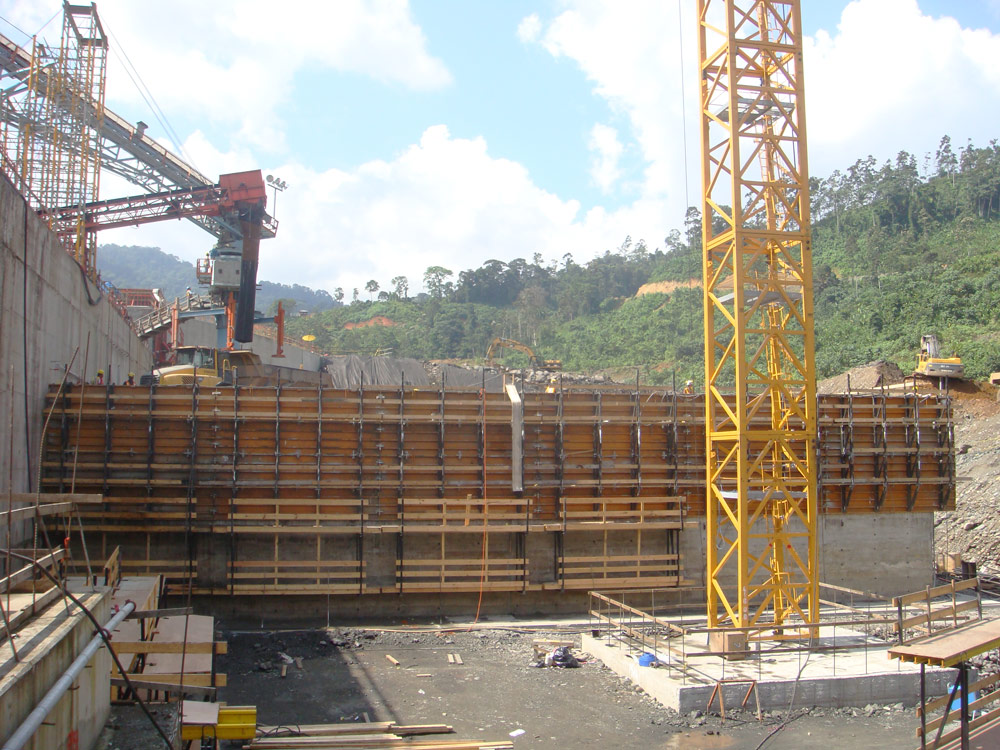 Para el moldaje aguas arriba de la presa se diseñó un sistema trepante con paneles metálicos que cumple todas las pautas de seguridad. Por debajo de la presa, se emplearon sistemas de paneles metálicos combinados con elementos del sistema MK para estructuras de gran capacidad portante, de uso habitual en obra civil.