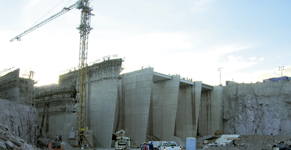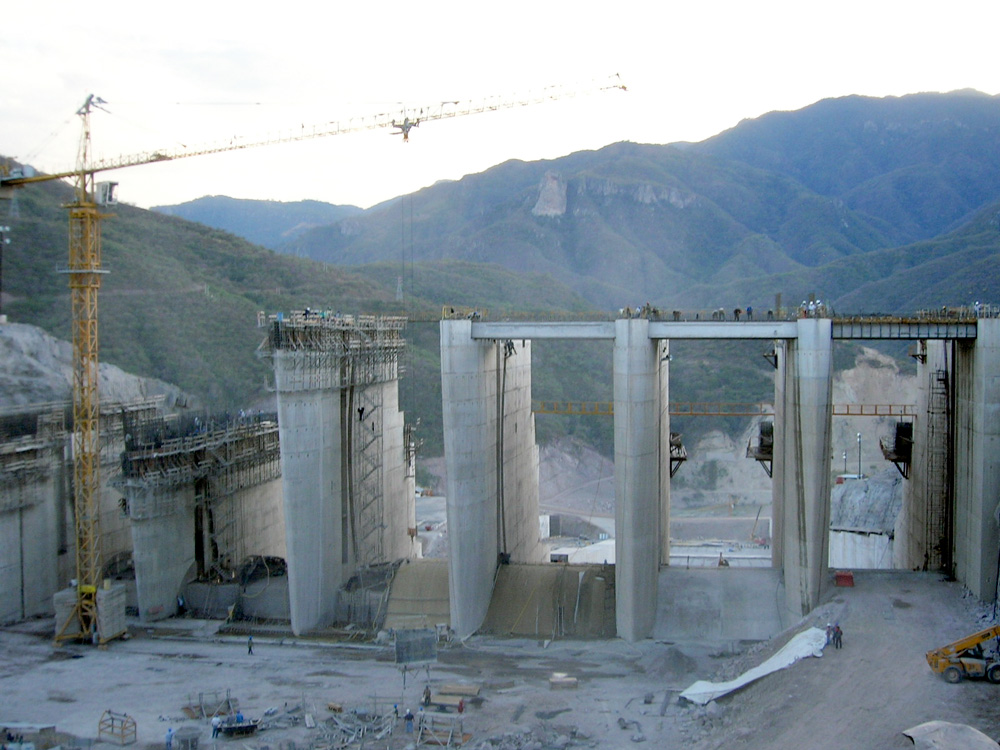 Para la ejecución de las pilas del vertedor de excedencias controlado, los muros curvos, el canal de desfogue y la viga testera, se aplicó la solución óptima con los sistemas trepantes sin retranqueo, el ENKOFORM V-100 y vigas.