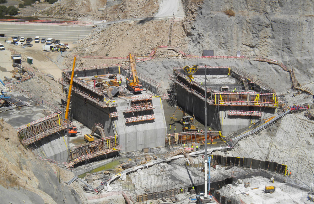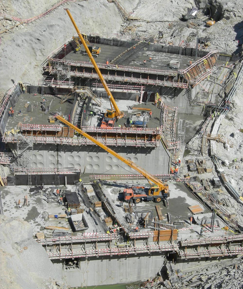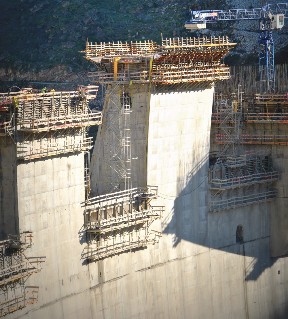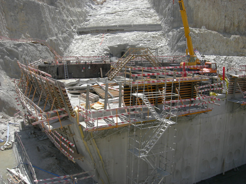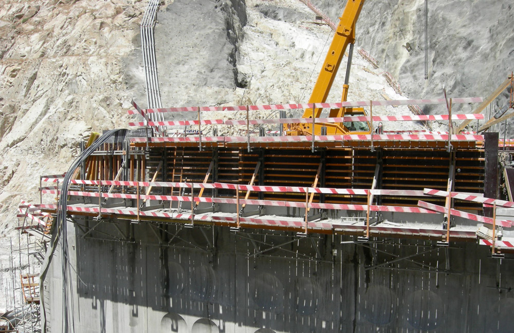 En la construcción de la presa, de 127 m de altura y 505 m de longitud, se utilizó moldaje vertical ORMA, BIRA y ENKOFORM V-100. También se emplearon consolas de trepado a una cara, suministros de cimbras, andamio multidireccional y Escalera BRIO. Se vertieron más de 860.300 m3 de hormigón.