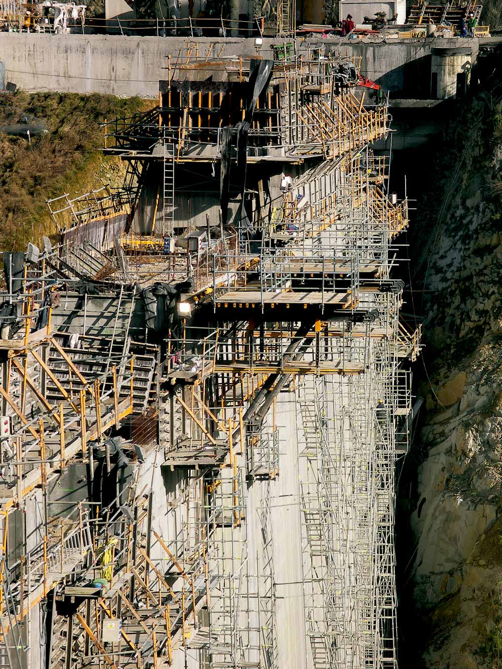 ULMA se encargó de realizar la coronación de la presa, zona transitable al tráfico. Para el extremo superior se emplearon tres equipos de material de consolas de trepado. El premontaje se ejecutó en dos semanas.