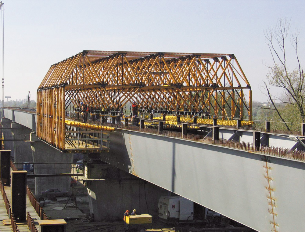 El paso WS10, sobre el río Biala, sortea 24 m de vano con perfiles apoyados sobre torres MK, adaptables a geometrías específicas. Ante las características de la estructura, el hormigonado se realizó en 20 fases (5 por cada carril). La mayor sección del tablero ejecutada fue de 159,3 m y 60 m la más corta.