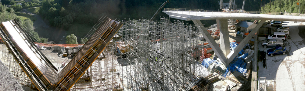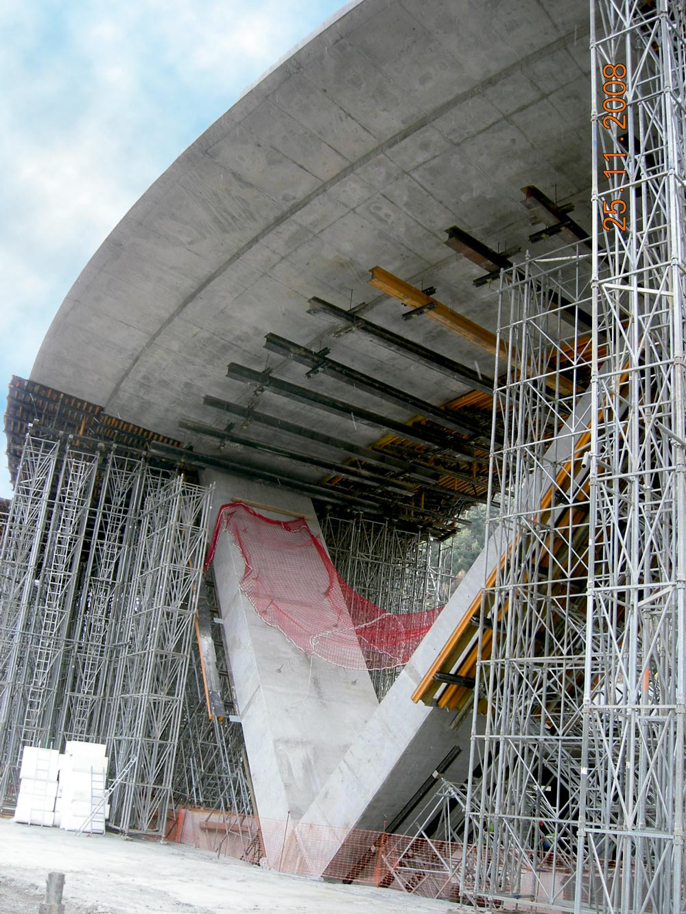 El diseño del apeo y del moldaje para la construcción del dintel de la pila se ejecutó por un sistema formado por ENKOFORM HMK, ENKOFORM V-100, vigas, y el sistema de apeo de sujeción a la pila mediante Consola MT.