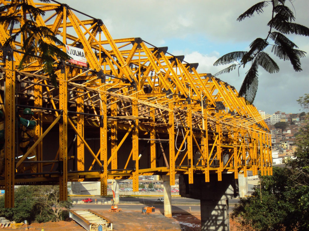 Este proyecto forma parte del Programa de Aceleración del Crecimiento (PAC) del Gobierno del Estado de Bahía. La carretera BR-324 une el Estado de Maranhão con el puerto de Salvador. Es una de las principales vías de este Estado e incluye varios pasos elevados. El viaducto 16, con 260 m de longitud y de tablero mixto de 10,5 m de ancho, discurre tanto por zonas pantanosas como sobre autopista, con vanos de hasta 40 m. Para sortearlos, se planteó una solución en voladizo que evita el uso de grúa y de apeos de superiores a 20 m. Con ello, además de reducir el coste de mano de obra y agilizar el proceso de trabajo, se mantuvo la circulación de forma ininterrumpida.