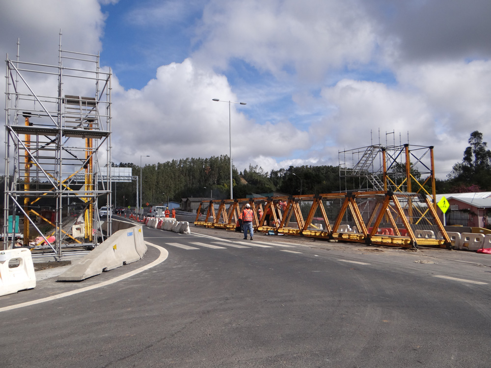 Anterior a la construcción de las pasarelas peatonales definitivas, se encargó a ULMA Chile, proveer la instalación de 4 pasarelas peatonales provisorias con el más alto estándar de seguridad.