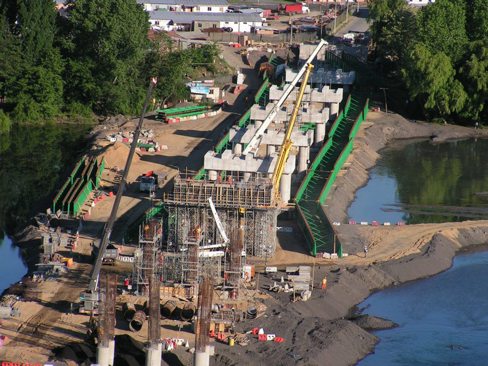La rapidez en el montaje y la posibilidad de transportar el sistema de cimbra T-60 sin desarmar ha asegurado un real avance de la obra (imagen 076), lo que significa un buen desempeño en el rendimiento y la posibilidad que se pueda adelantar la puesta en servicio de este puente.