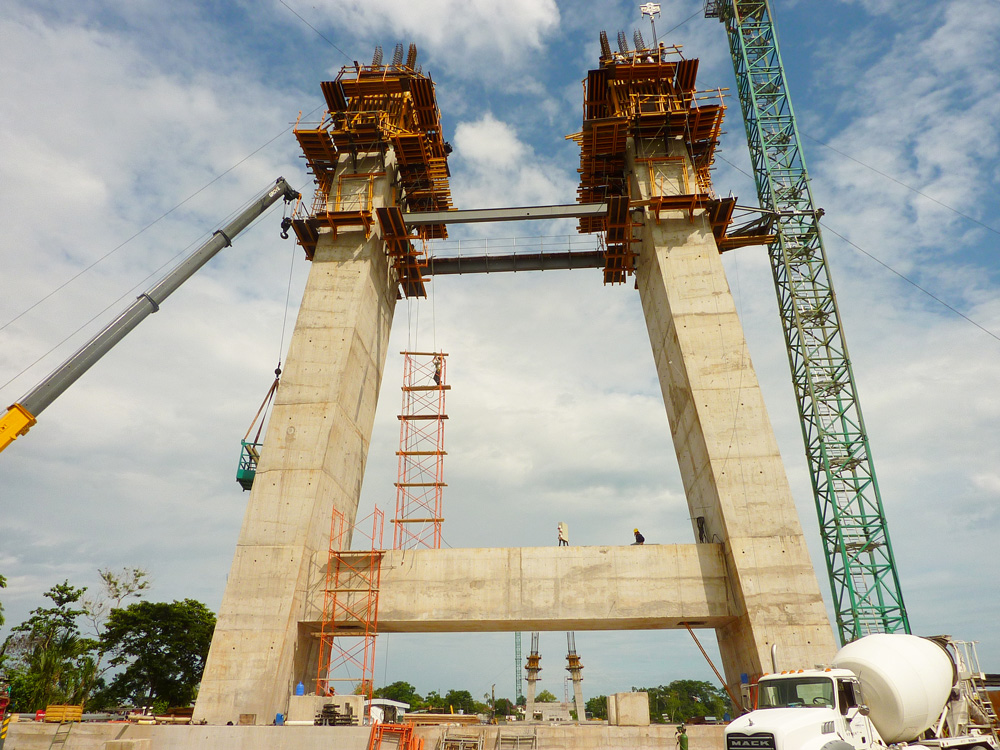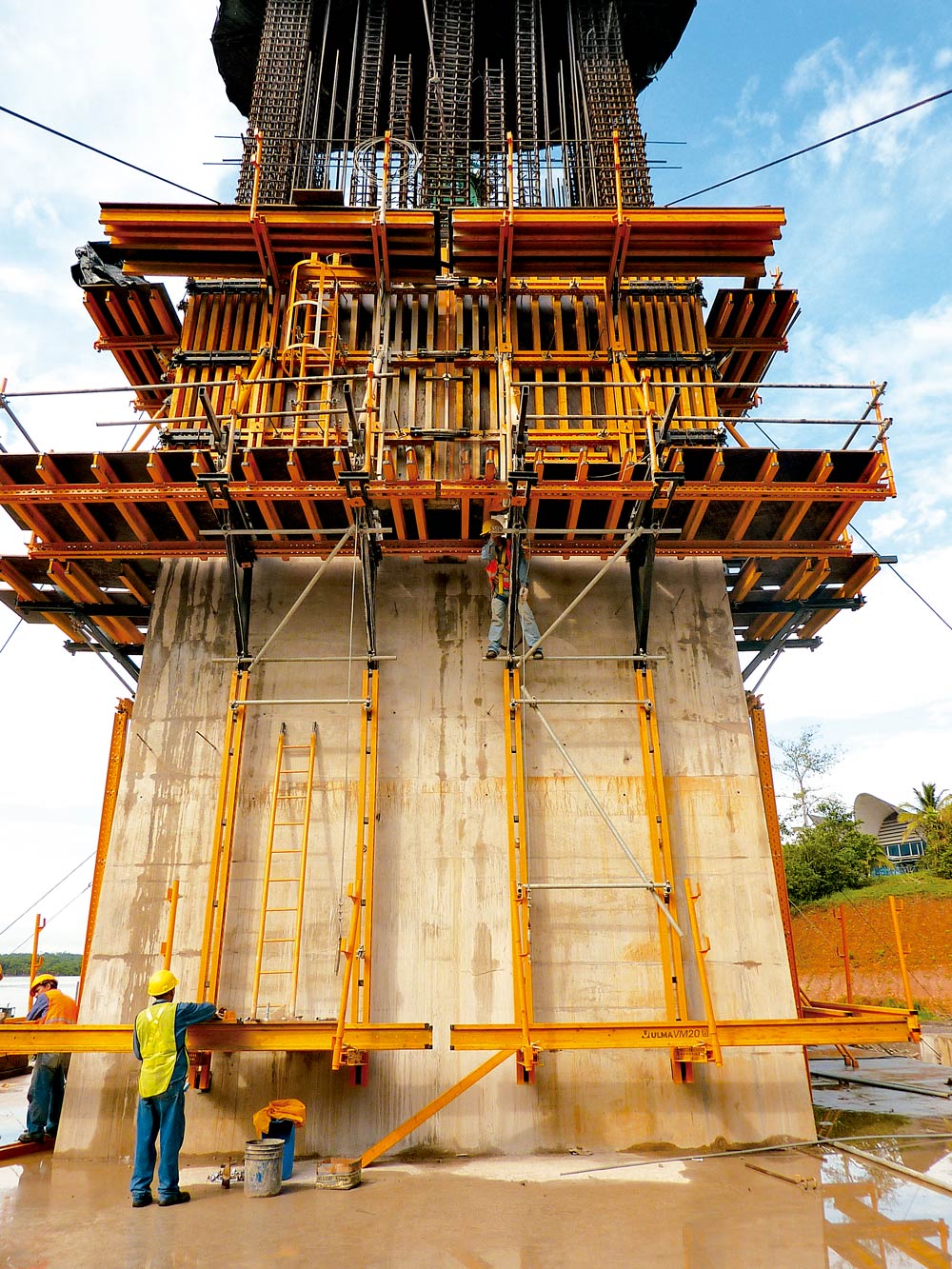 Para la construcción de las dos torres, vigas de peralte, pilas intermedias y estribos, ULMA incorporó el sistema de moldaje horizontal ENKOFORM HMK, vertical ENKOFORM VMK, tensores y consolas de trepado.