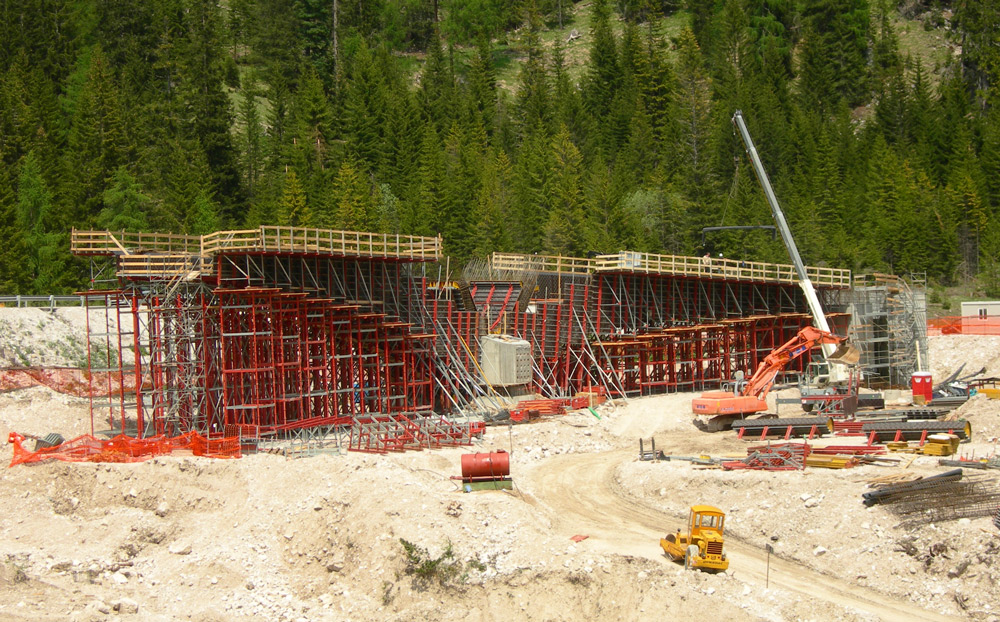 Tras el fraguado del hormigón y el descimbrado, se empleó el mismo material de forma simétrica entre el estribo y la pila al otro lado del puente. En la parte central del puente (40 m), una torre de gran capacidad operó sobre una zapata provisional. La distancia entre apoyos se salvó con cerchas de gran capacidad de carga que soportaron el moldaje.