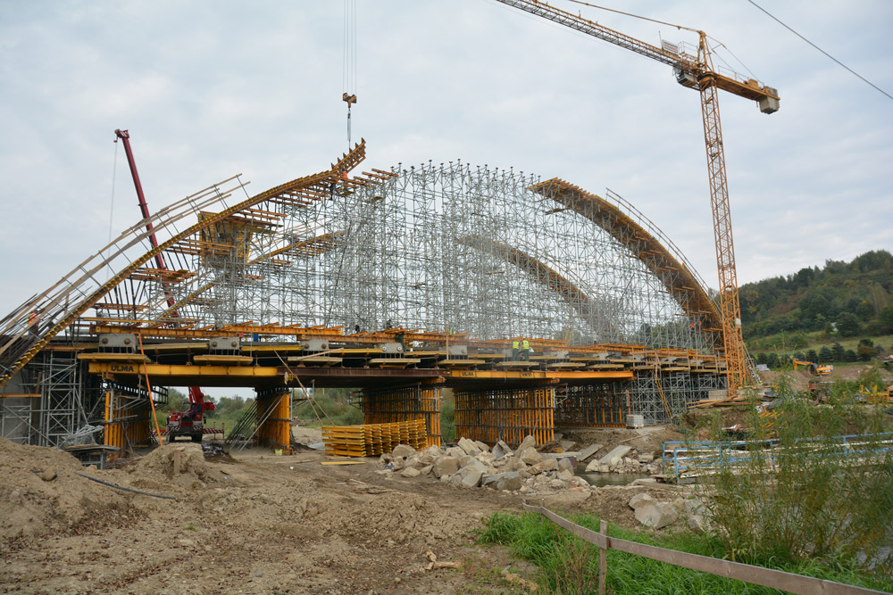 Las torres de cimbra T-60, en modulaciones de 1 x 1, 1 x 1,5 y 1,5 x 1,5 m se ha adaptado perfectamente en el apeo de las vigas en arco y las vigas transversales, apoyados sobre el terreno o sobre perfilería metálica.