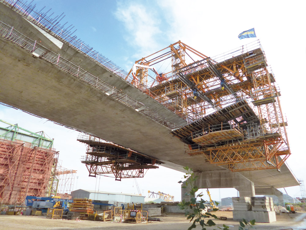 ULMA ha ejecutado varios tramos correspondientes a 1.079 m de tablero con: una sección de grandes dimensiones, geometría interior compleja y un exterior en forma de trapecio, con lados paralelos de 10 y 30 m y altura variable entre 2 y 3 m.