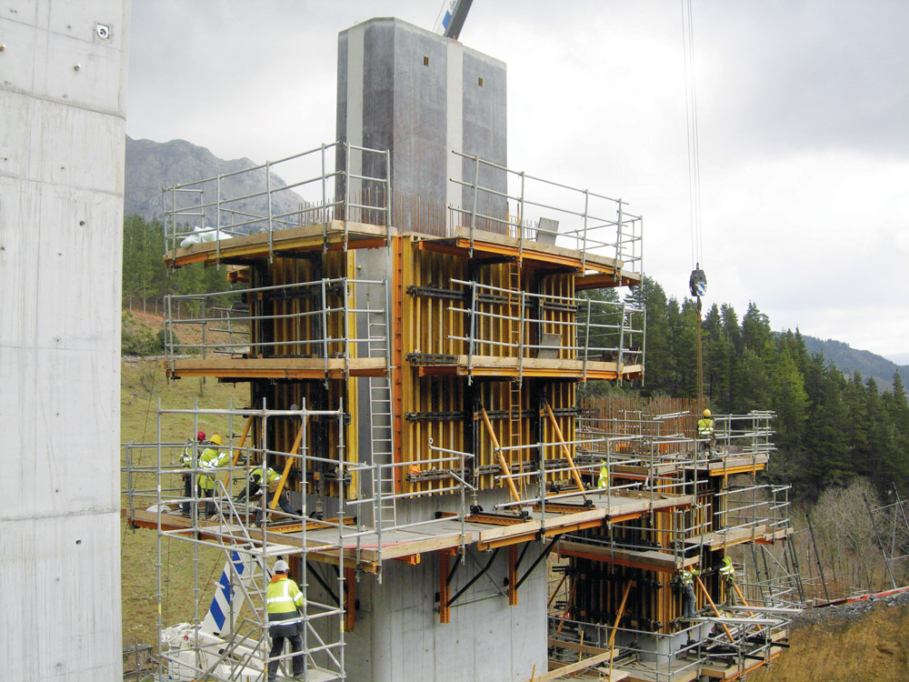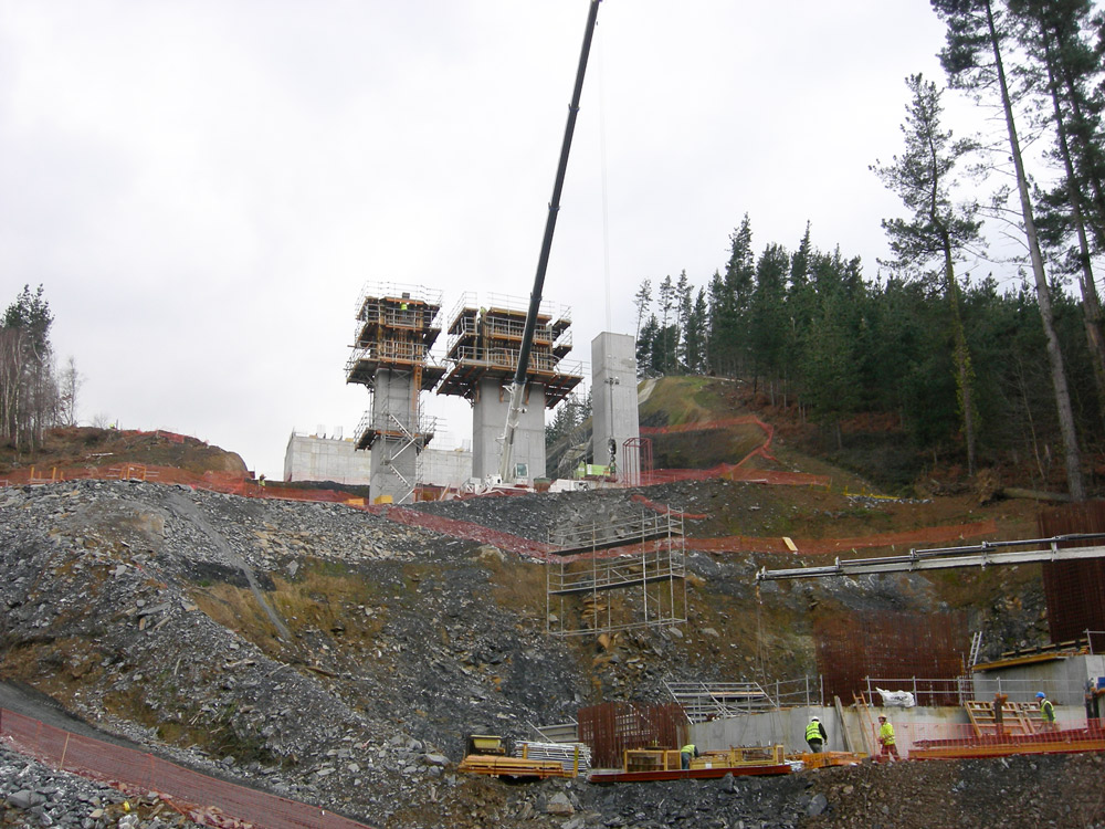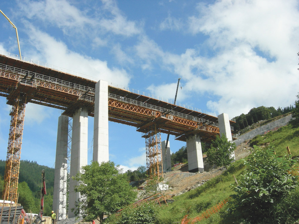 El tablero de sección cajón, con canto de 3,64 m, se ejecuta en dos fases, mediante el moldaje ENKOFORM HMK. En la primera, se realiza el fondo y los hastiales y en la segunda, el techo y las alas.