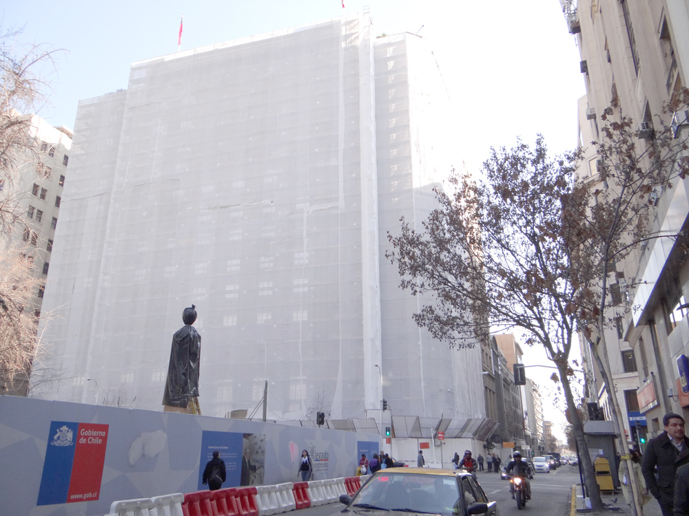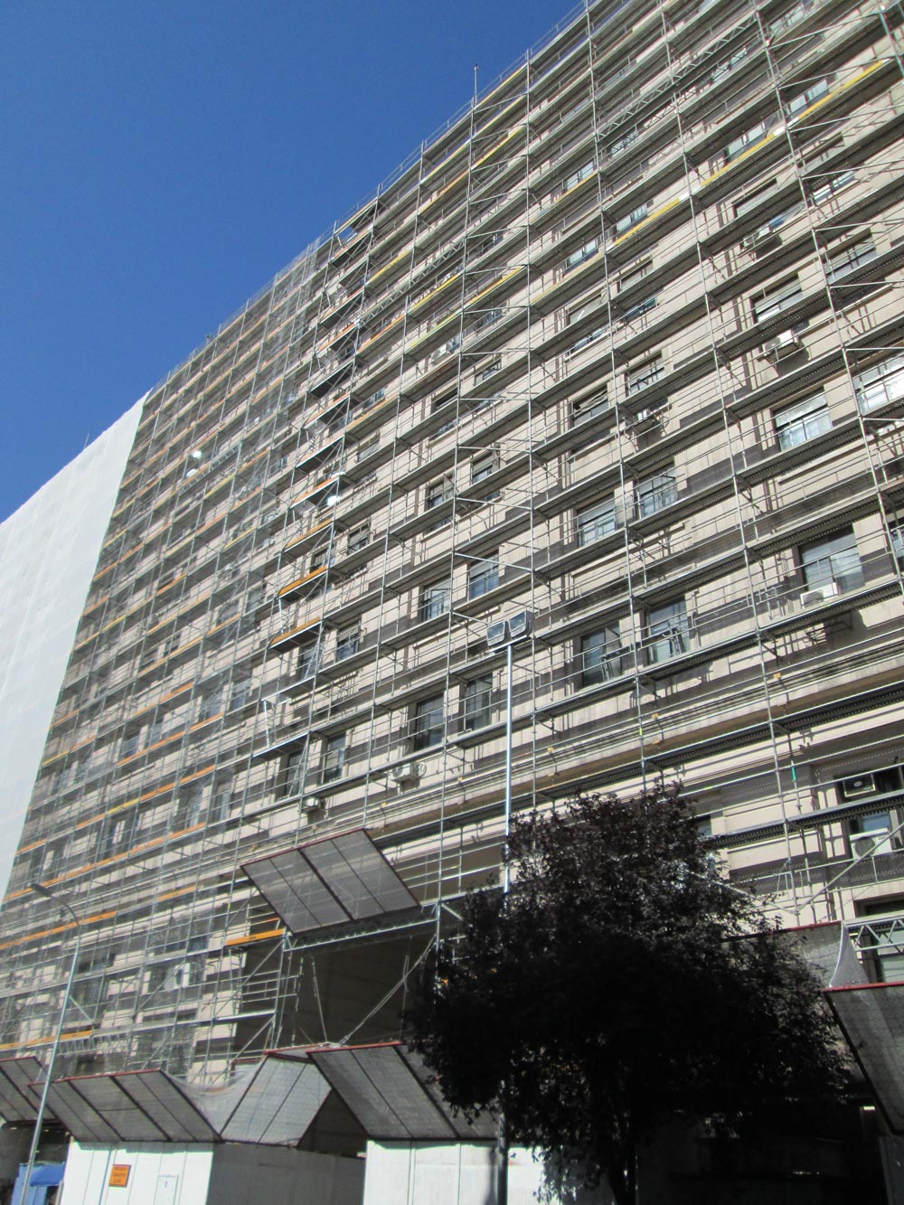 En total ULMA instaló cerca de 12.600m2 con su sistema de andamios DORPA entre los edificios de calle teatinos más de 6200m2, y en el edificio de edificio Relaciones Exteriores 6400m2.