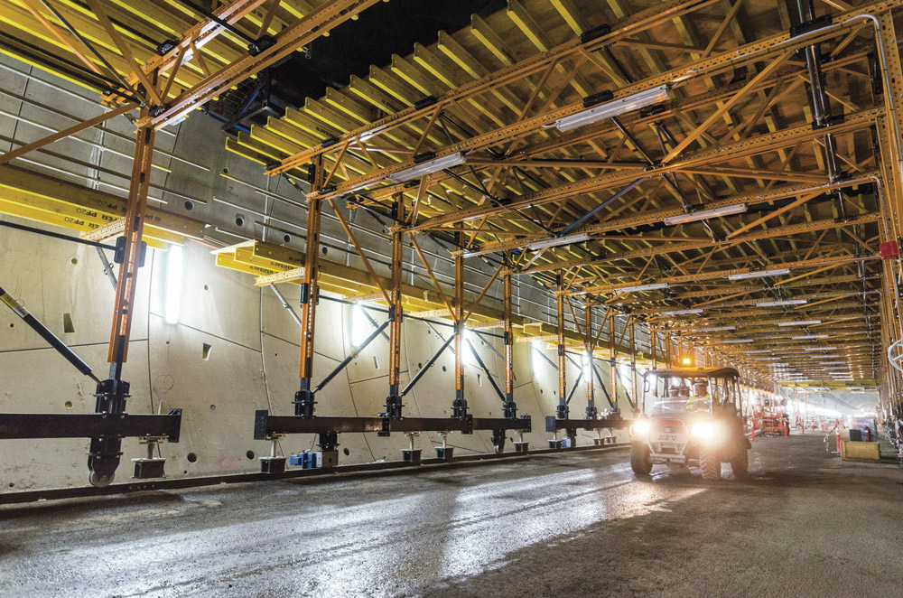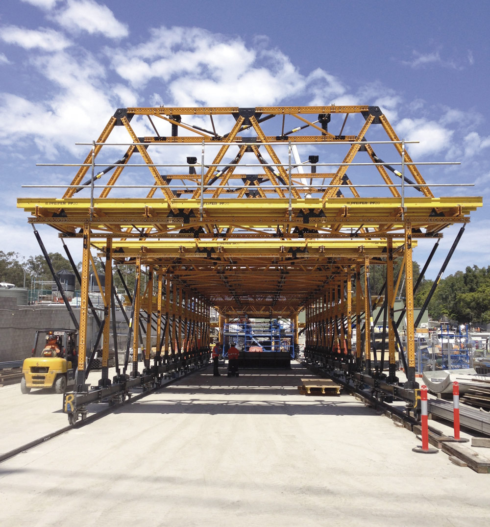 Una vez colocados los muros prefabricados de hormigón, el siguiente paso era el establecimiento/disposición de los equipos eléctricos y mecánicos. Transcity, constructor del proyecto, buscaba una solución innovadora para instalar los voladizos y conductos de ventilación en los túneles. Uni-span, distribuidor oficial de ULMA en Australia, fue elegido desde el inicio del proyecto para la planificación, suministro y construcción de este trabajo en ambos túneles.