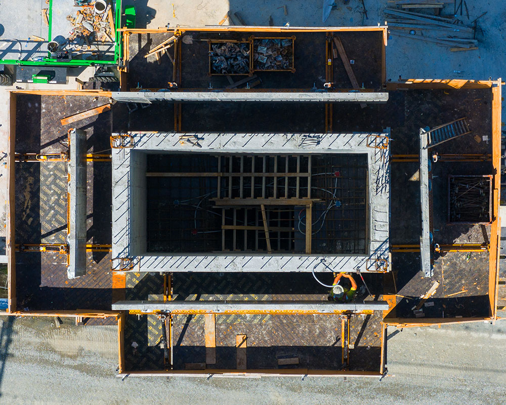 El encofrado ORMA ha sido el protagonista del proyecto con su aplicación en los muros principales de dos núcleos independientes. Al contar con una amplia gama de paneles, ha optimizado el ciclo de hormigonado en tongadas de 3,2 m de una altura. Además, combinado con la escuadra de desencofrado MAX ha sido posible elevar el interior de los núcleos de una sola vez. La calidad excepcional de ORMA garantiza un acabado en hormigón que disminuye la necesidad de mano de obra y tiempo de trabajo. Con ORMA, no solo mejora la eficiencia en obra, sino que eleva los estándares de calidad en la construcción.