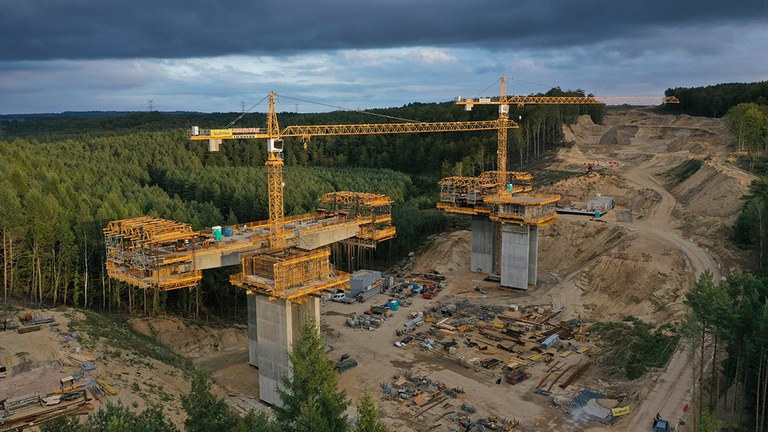 La estructura ES-60 está compuesta por dos calzadas de 186,8 m cada una, la izquierda, dirección Szczecin, tiene una anchura de 13,7 m, y la derecha de 15,15 m. El tablero de la estructura se ha dividido en 3 vanos, dos de 50,9 m de longitud y uno de 85 m. La sección del tablero es variable desde los 4,22 m sobre los pilares intermedios, hasta 2,5 m sobre los pilares extremos y la dovela de cierre. La ejecución del tablero se ha realizado en segmentos de diferentes dimensiones según el sistema empleado: las dovelas cero de 11 m de longitud, la dovela de cierre de 2 m, los tramos en los estribos de 9,4 m de longitud, mientras que los tramos llevados a cabo por el sistema de voladizos sucesivos se han realizado en segmentos iguales de 4 m y en ciclos de trabajo de 7 días.
