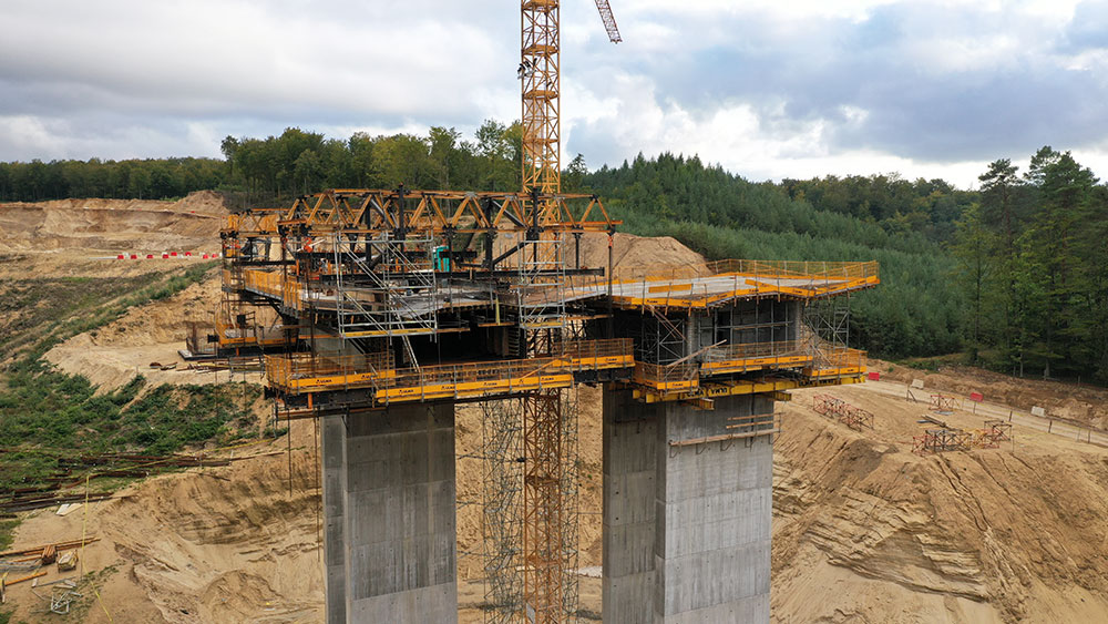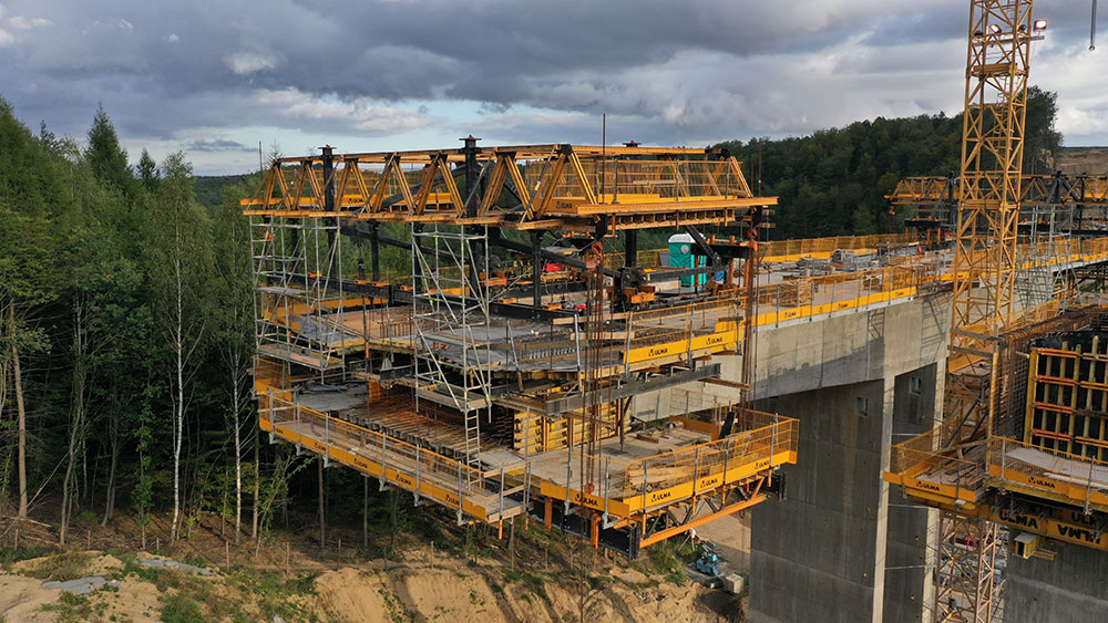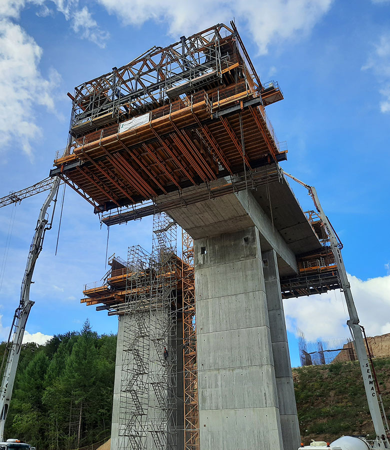Debido a la localización del proyecto, un valle de gran profundidad, ULMA ha planteado la ejecución del tablero con el método de voladizos sucesivos. Esta tecnología es la más idónea y aporta un alto rendimiento en la construcción de puentes de grandes luces, cuando la altura de las pilas es elevada o en tableros de puente donde el apeo sobre el terreno sea complejo.