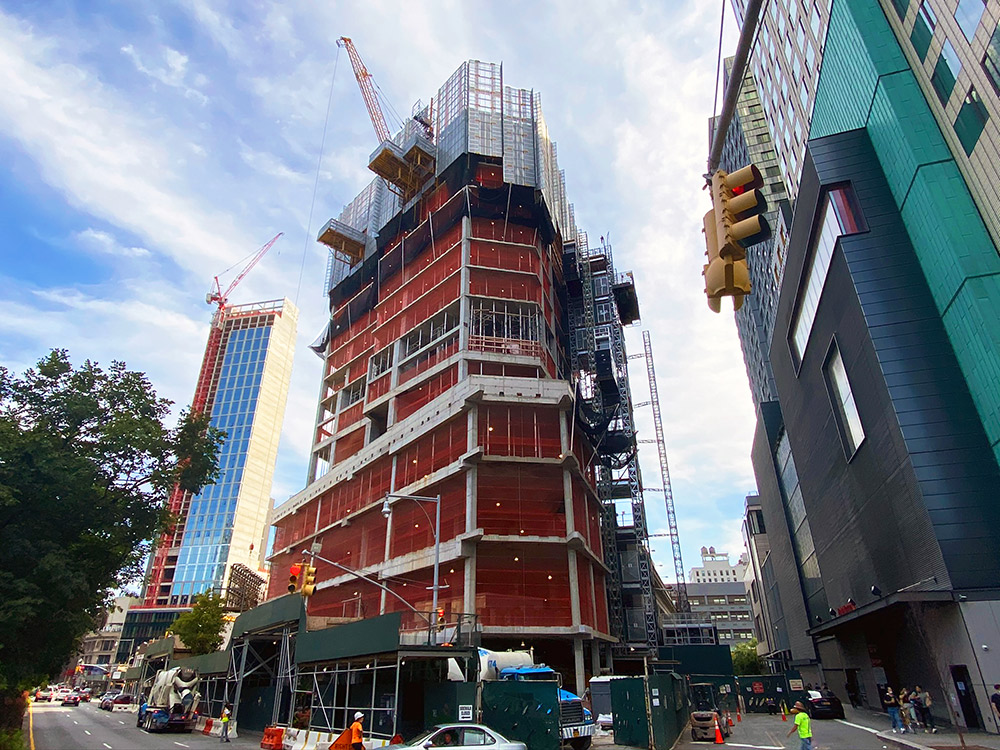 Tras la construcción de Brooklyn Point, el cliente ha vuelto a confiar en las soluciones de moldaje, apeo, sistemas de trepado y seguridad de ULMA para la ejecución de 9 Dekalb Ave.